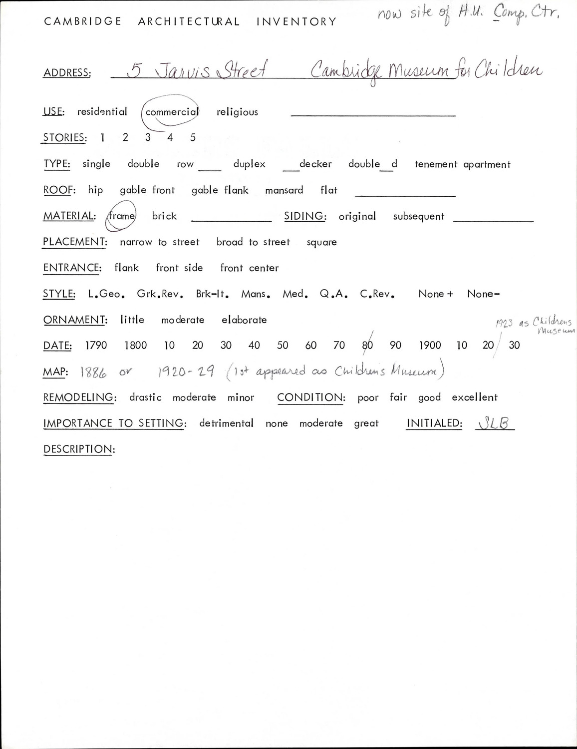 - Cambridge Historical Commission, Digital Architectural Survey and History.