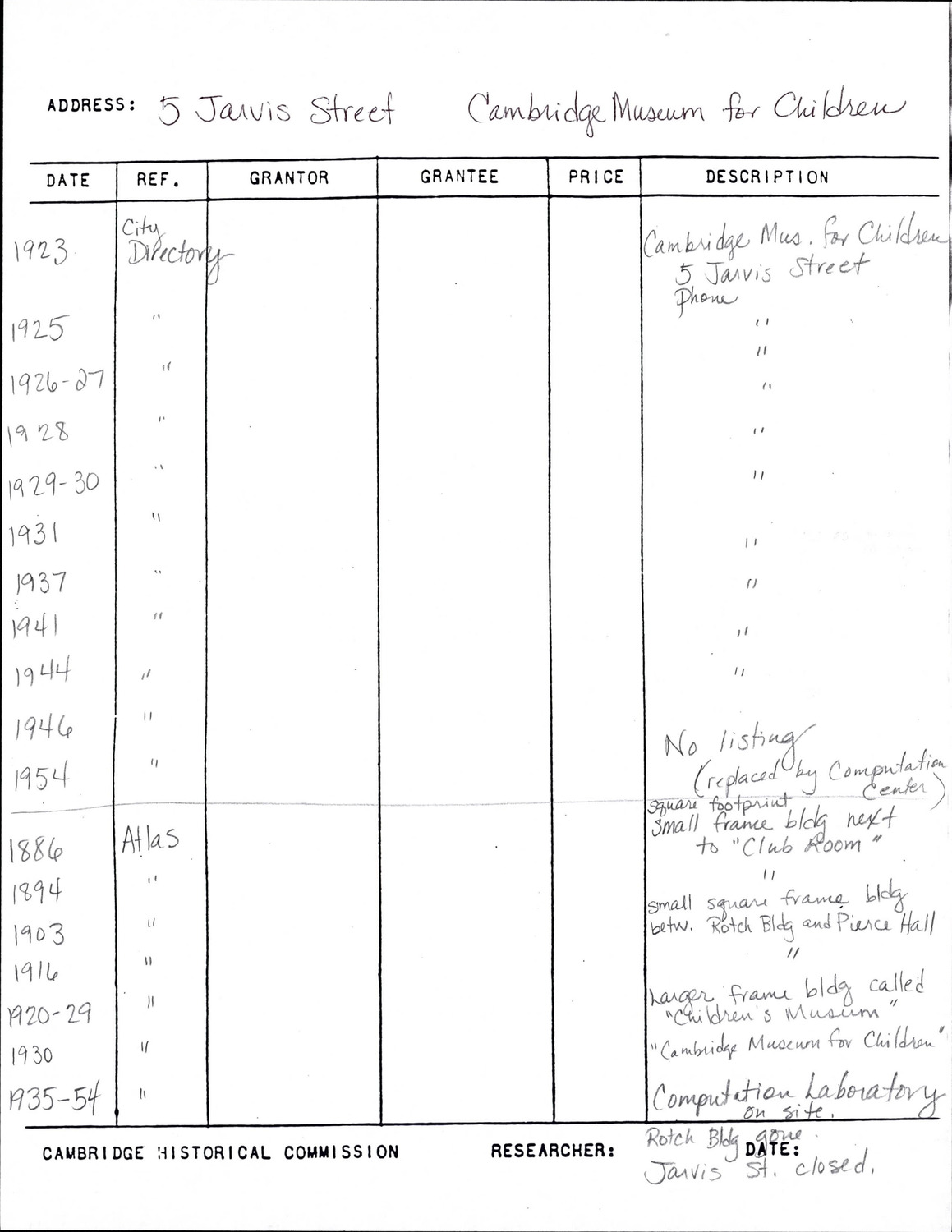 - Cambridge Historical Commission, Digital Architectural Survey and History.