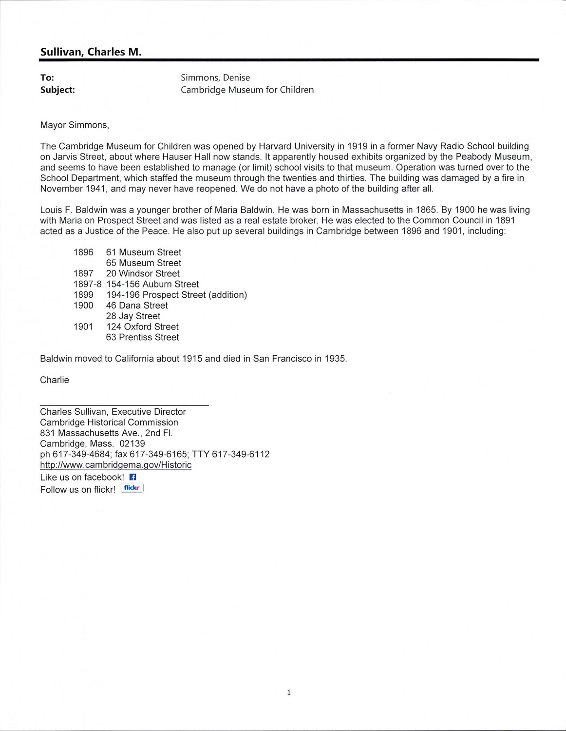 - Cambridge Historical Commission, Digital Architectural Survey and History.