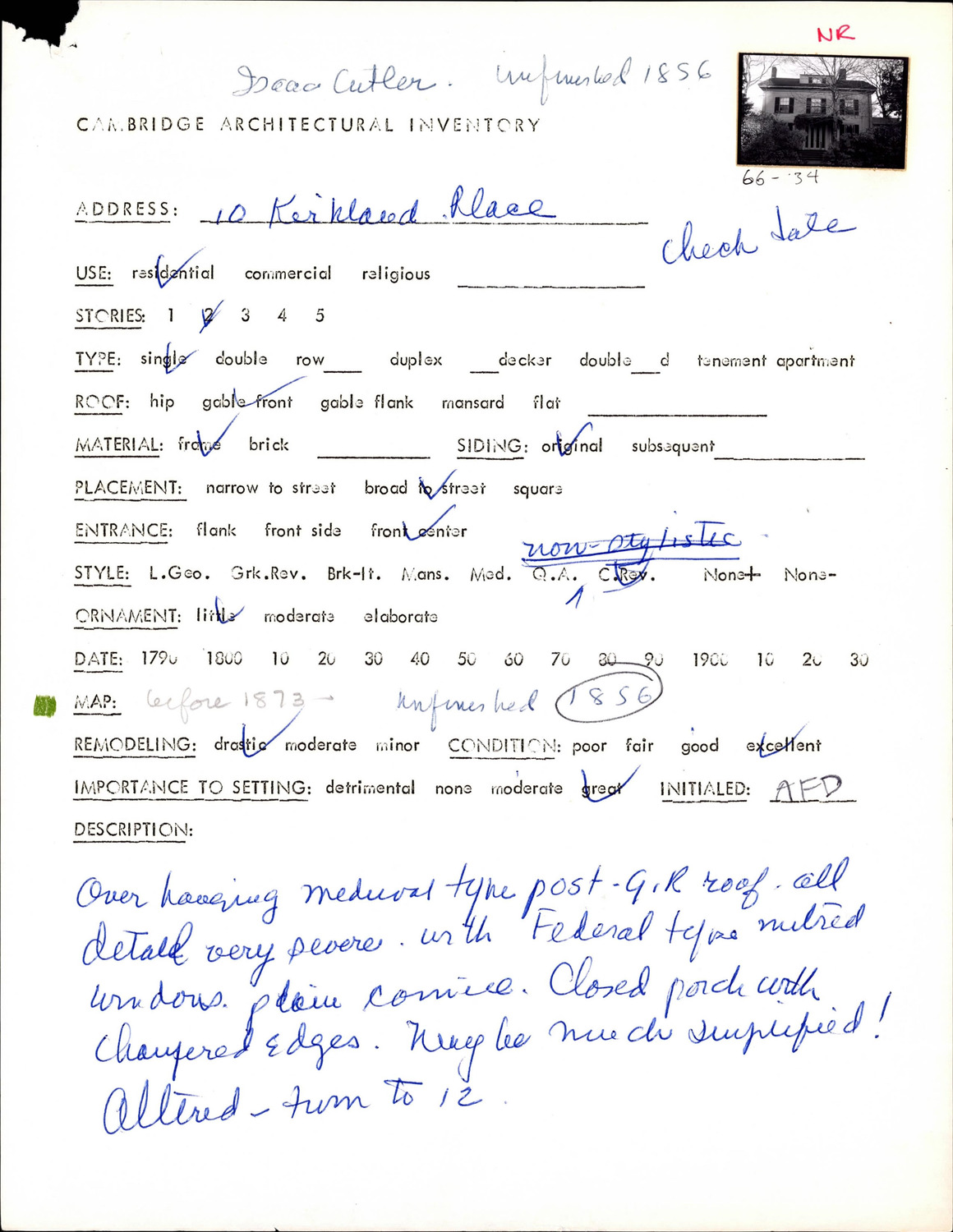 10 Kirkland Pl - Architectural Inventory Form