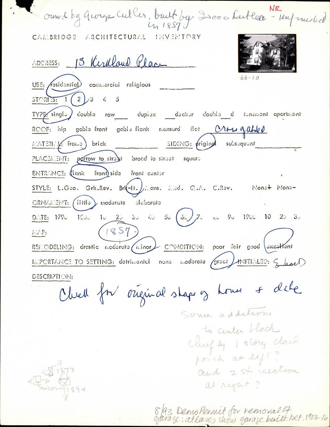 13 Kirkland St - Architectural Inventory Form