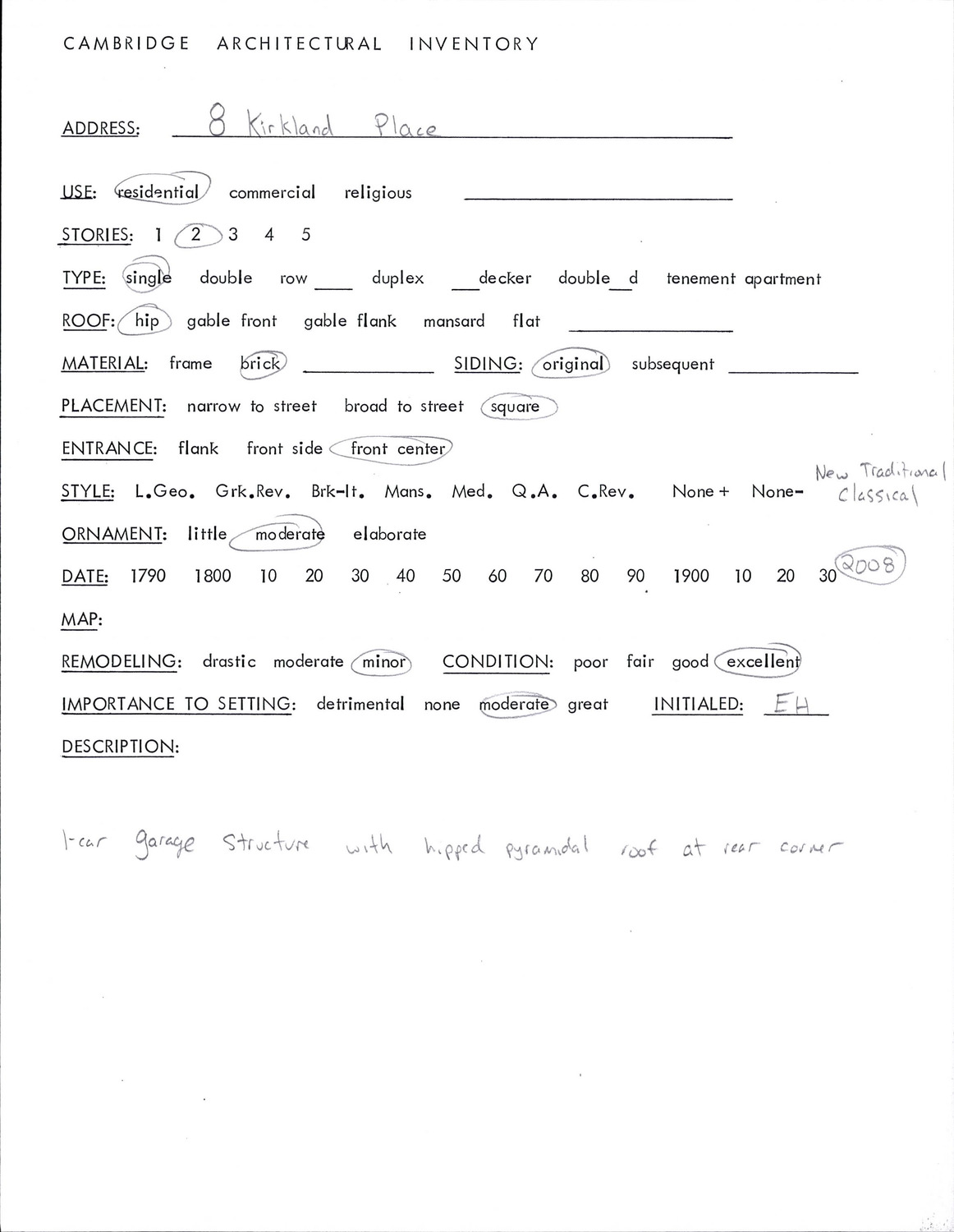 8 Kirkland Pl - Architectural Inventory Form