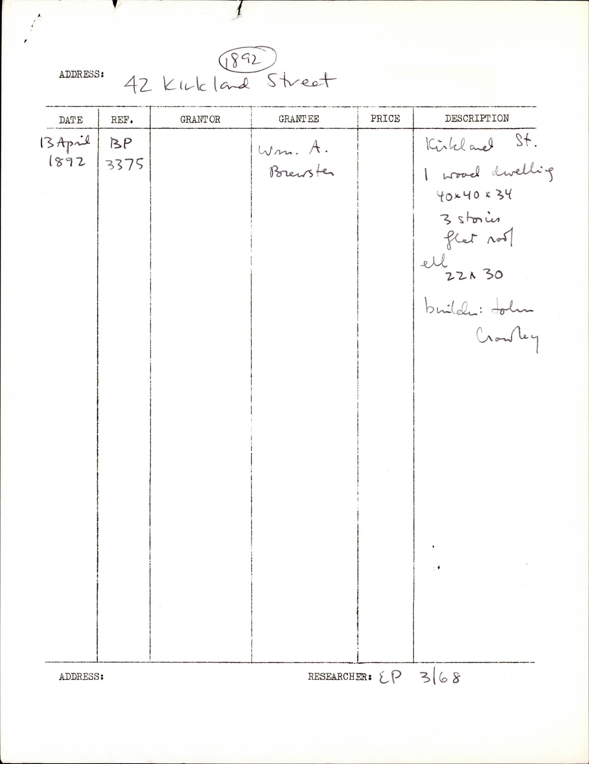 42 Kirkland St - Research Form