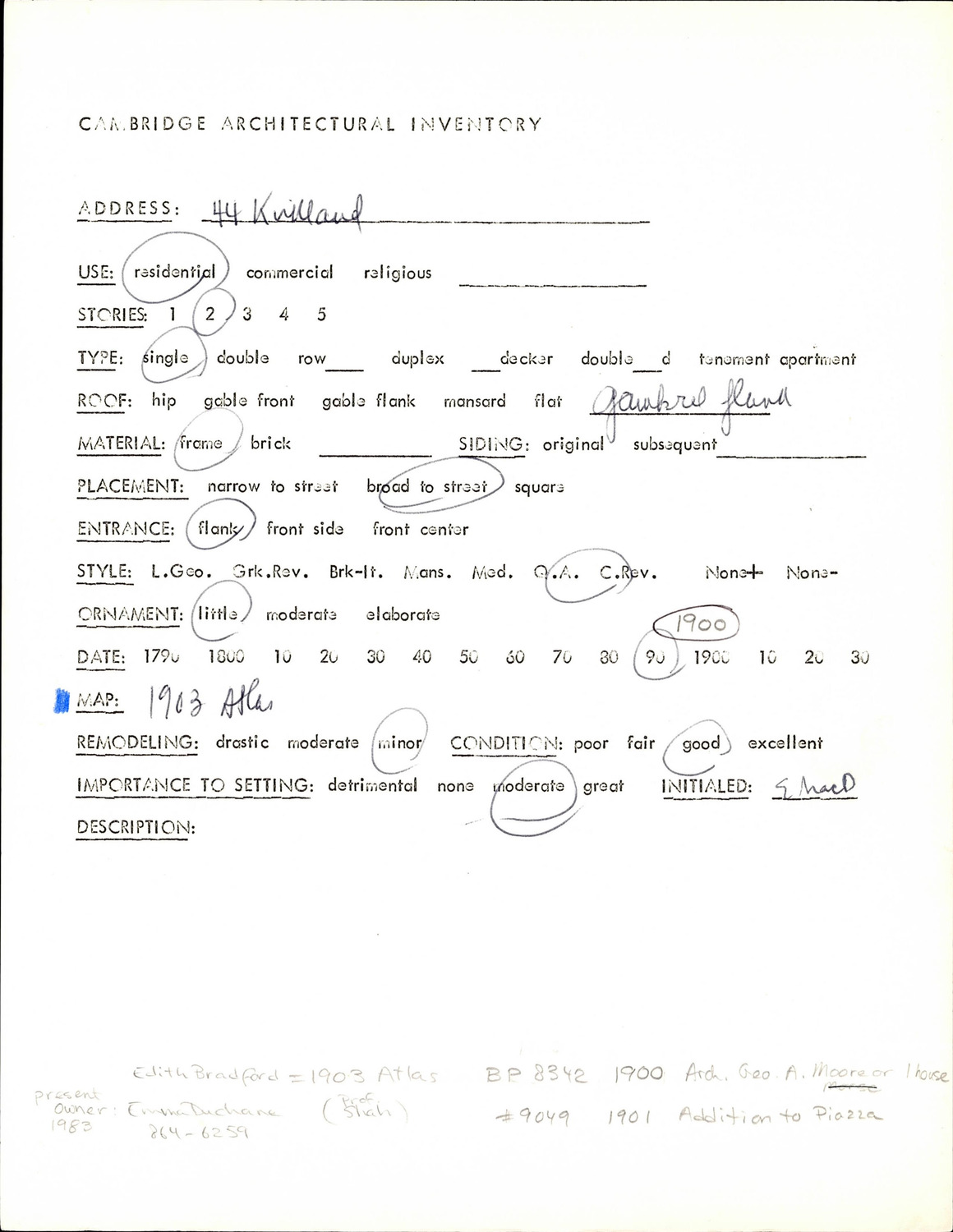 44 Kirkland St - Architectural Inventory Form
