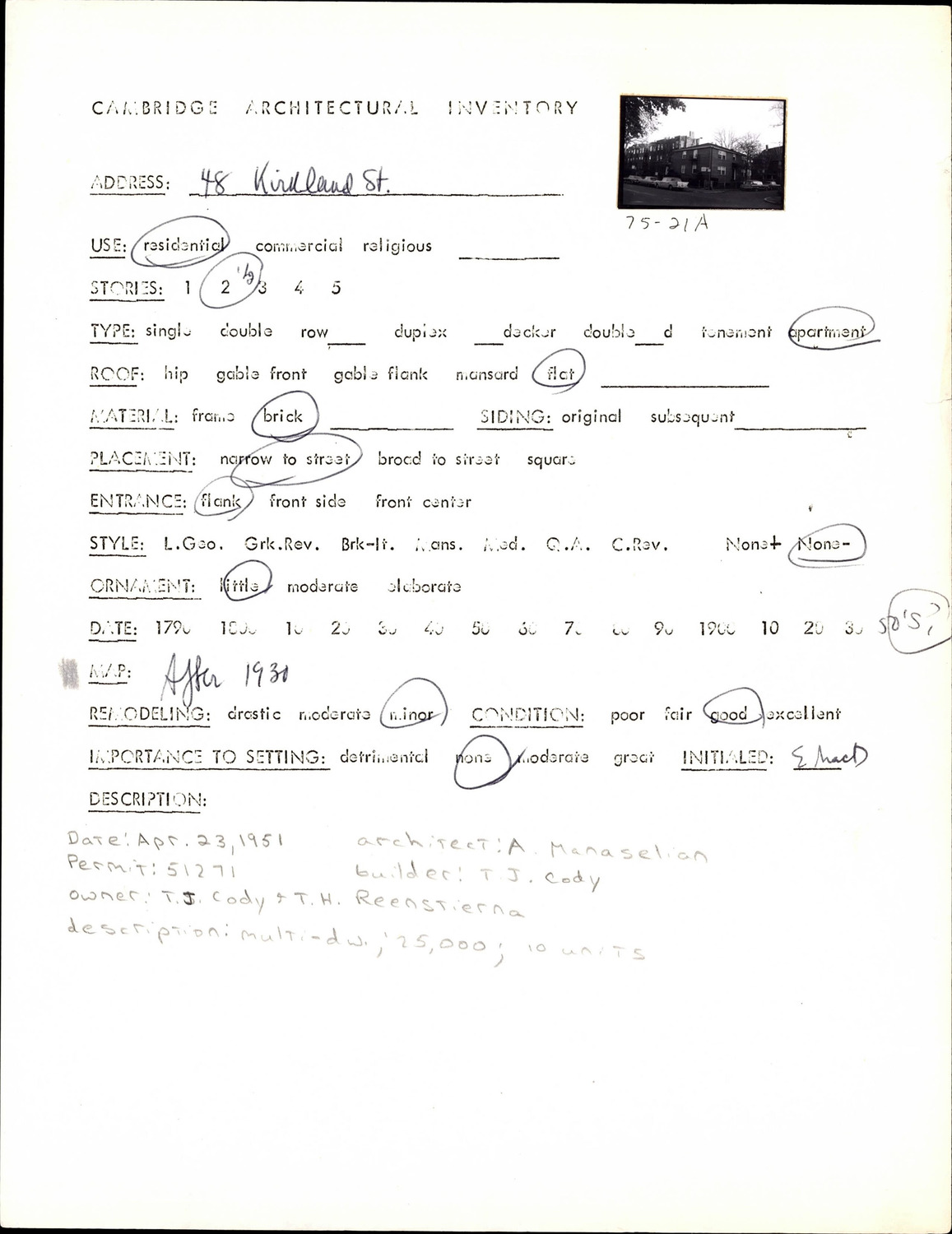 - Cambridge Historical Commission, Digital Architectural Survey and History.