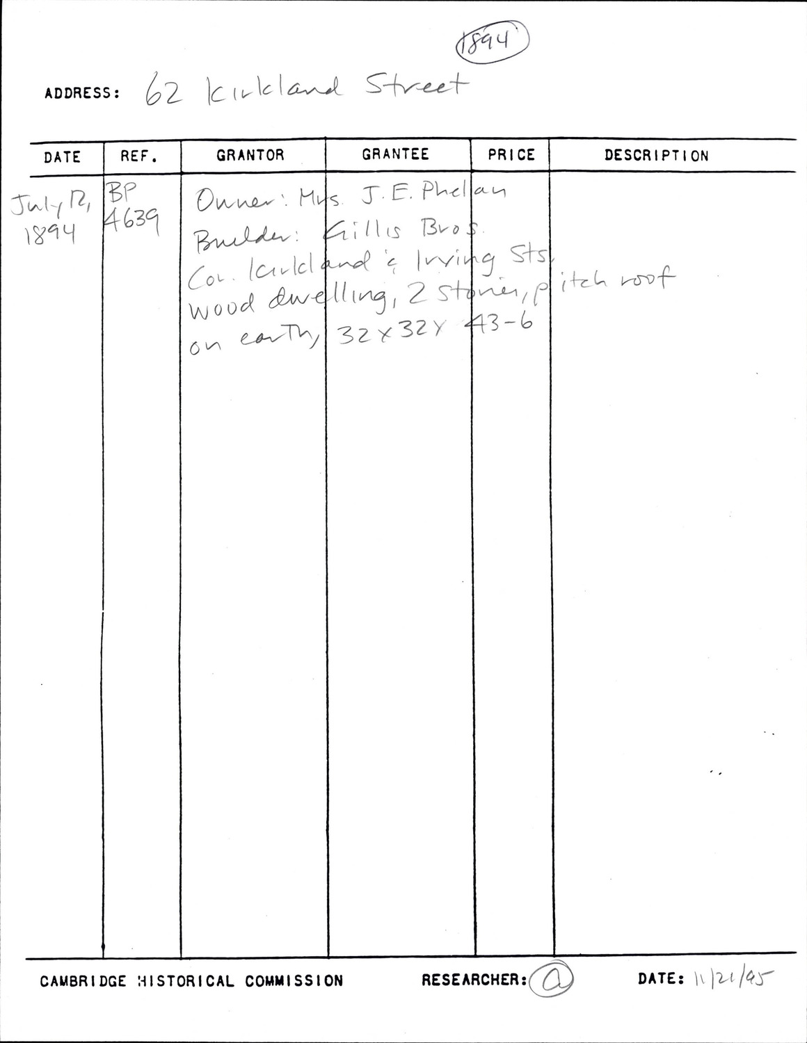 62 Kirkland St - Research Form