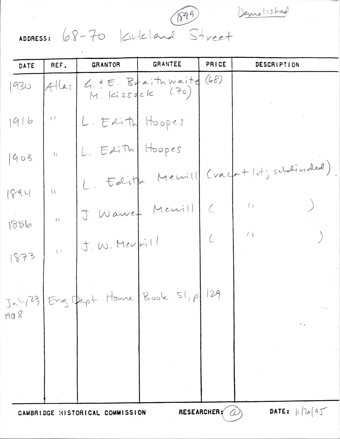 68-70 Kirkland St - Research Form
