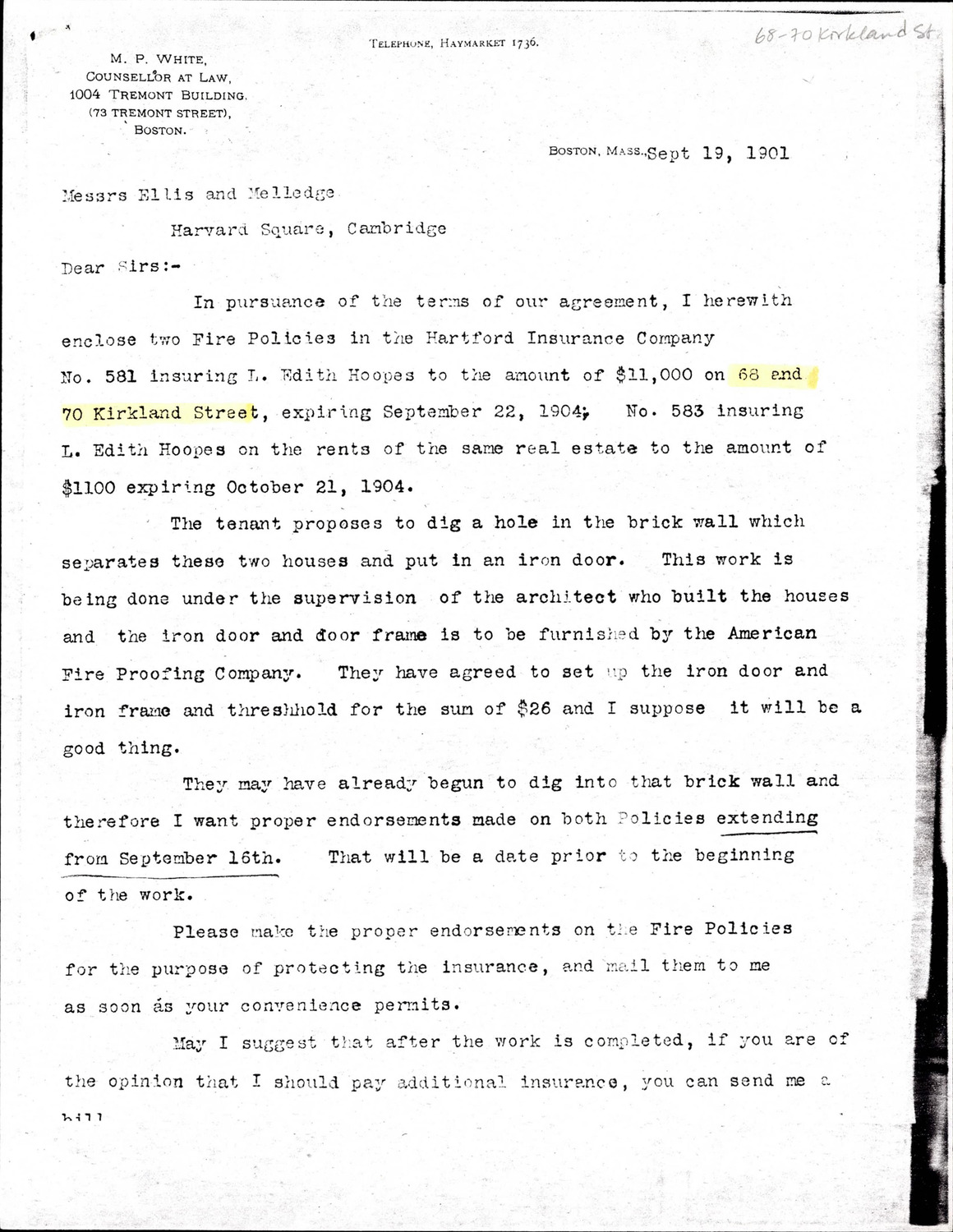 68-70 Kirkland St - Correspondence