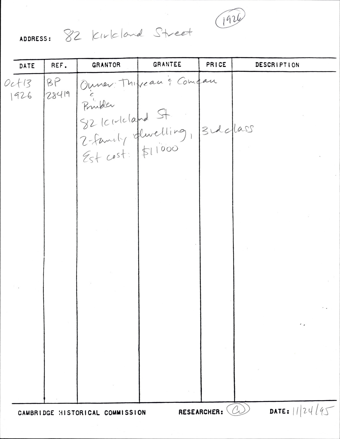 82 Kirkland St - Research Form
