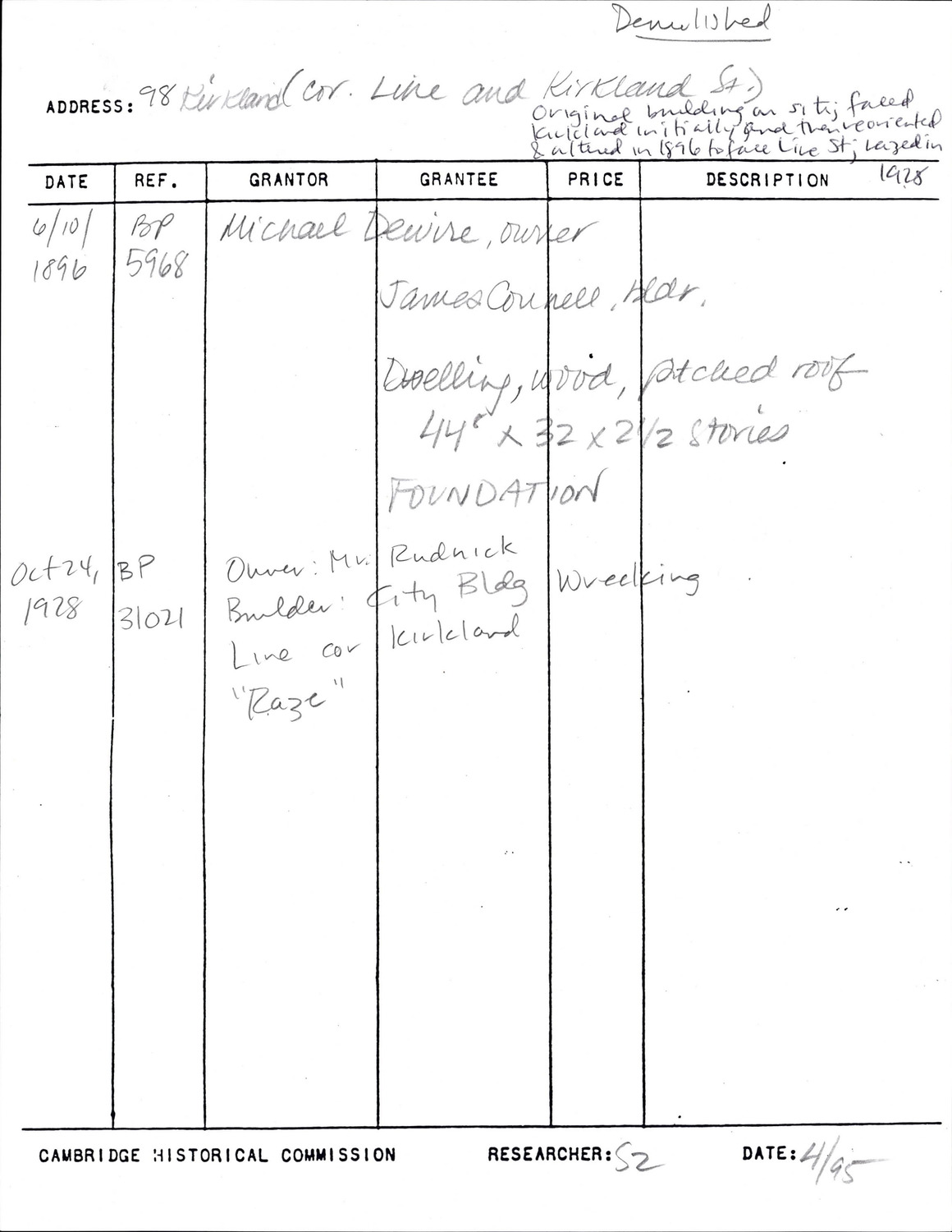 98 Kirkland St - Research Form