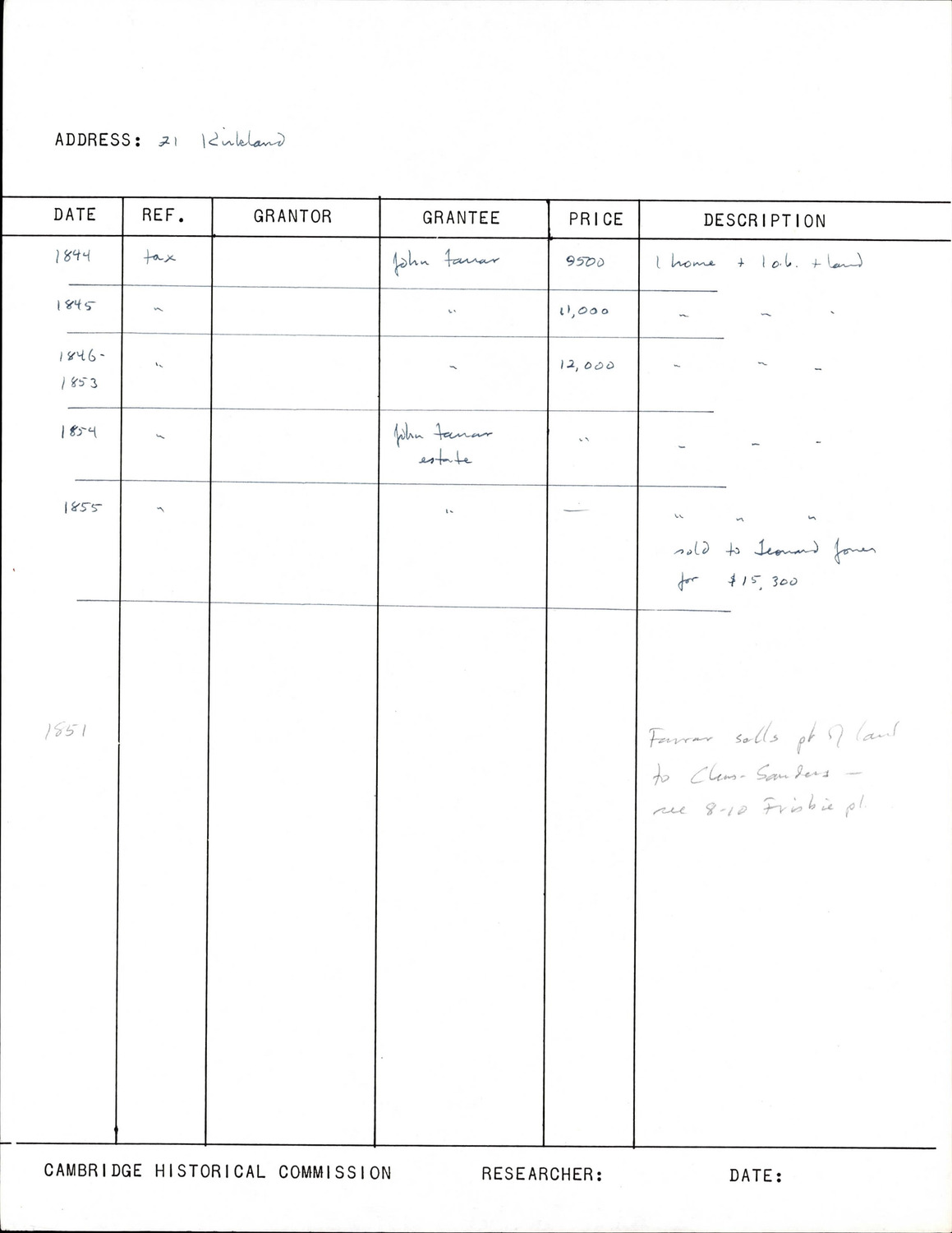 21 Kirkland St - Research Form