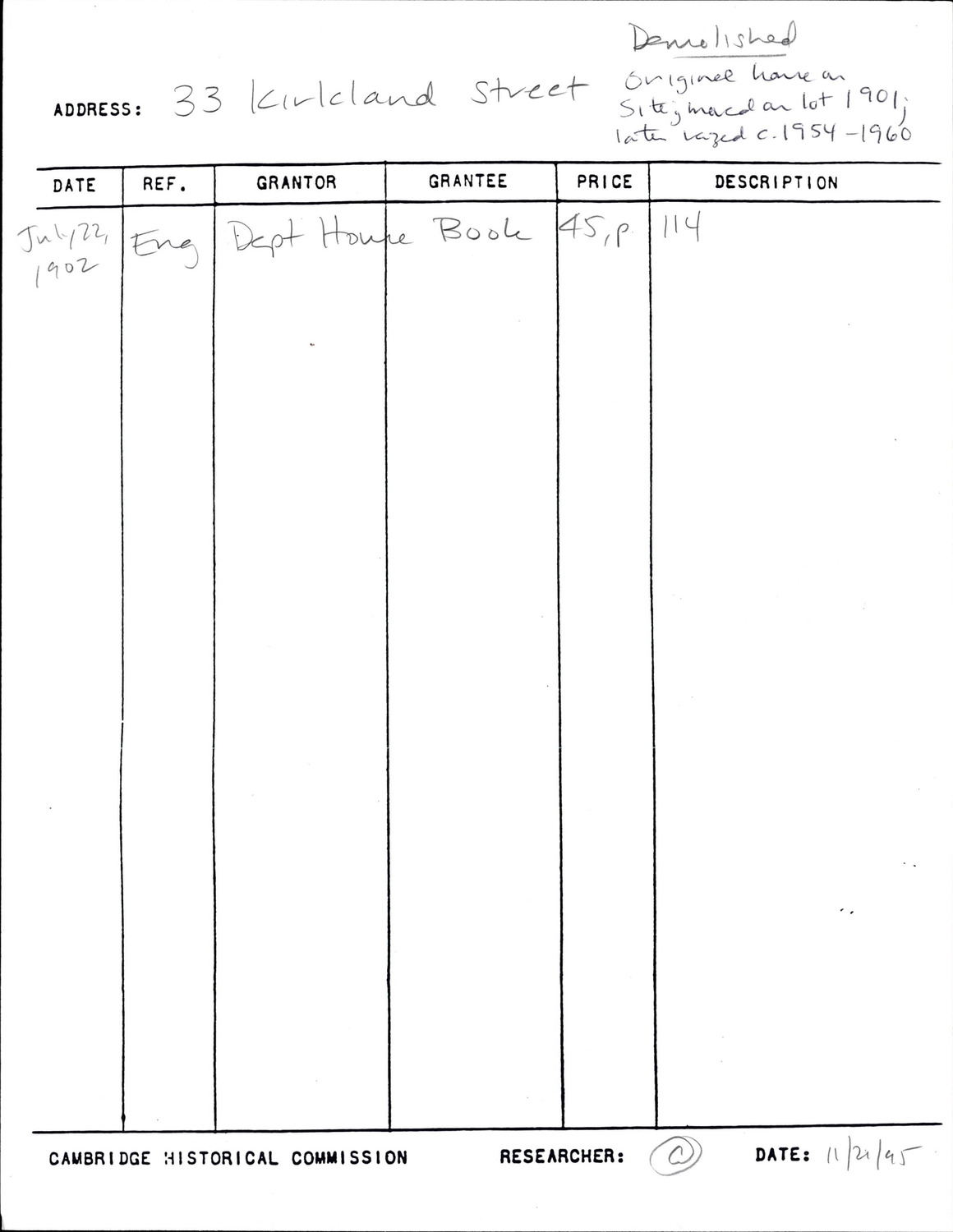 33 Kirkland St - Research Form