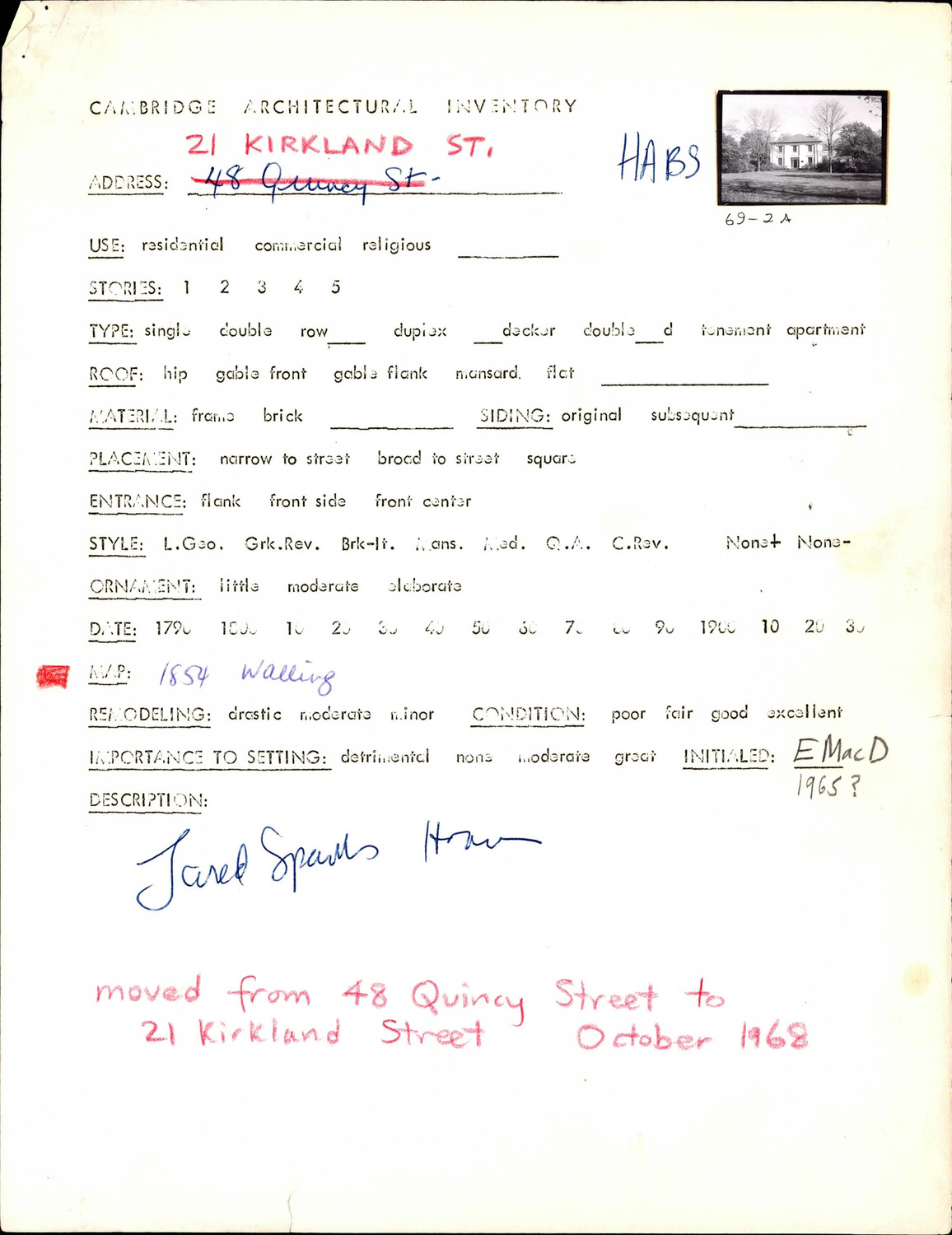 21 Kirkland St - Architectural Inventory Form