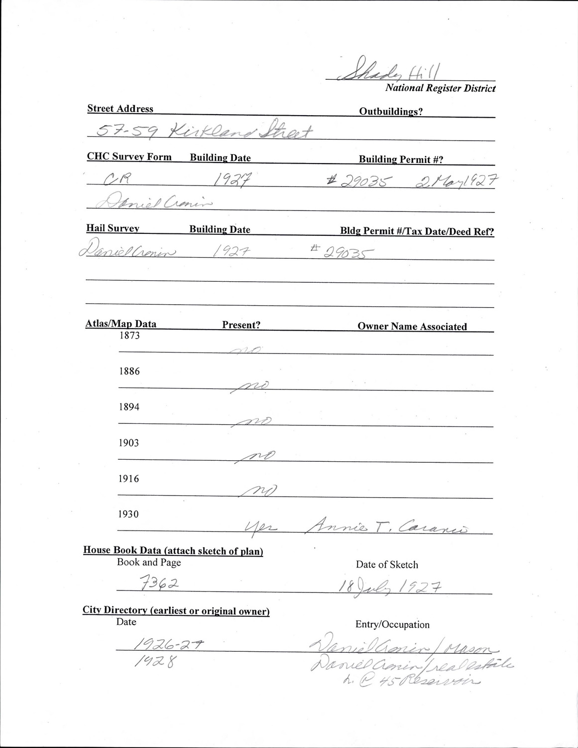57-59 Kirkland St - Research Form