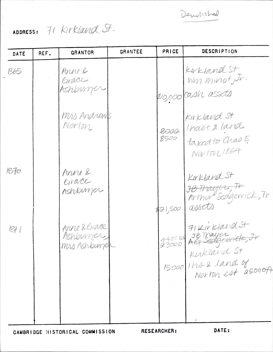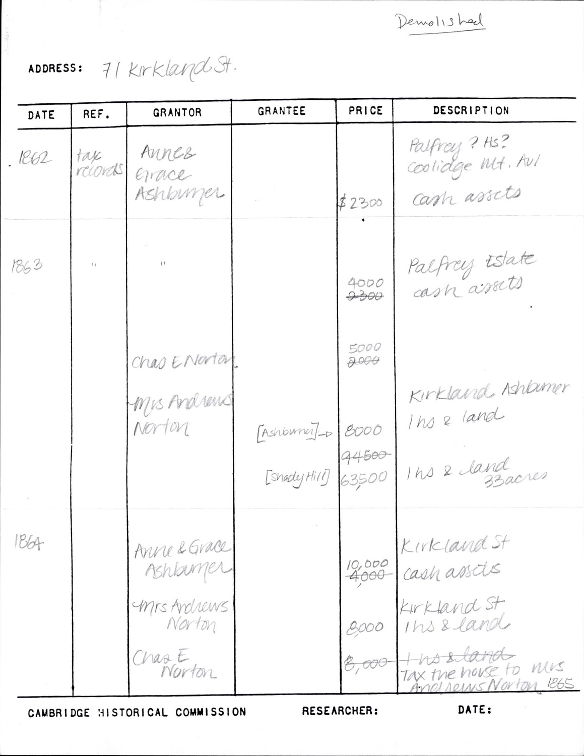 71 Kirkland St - Research Form