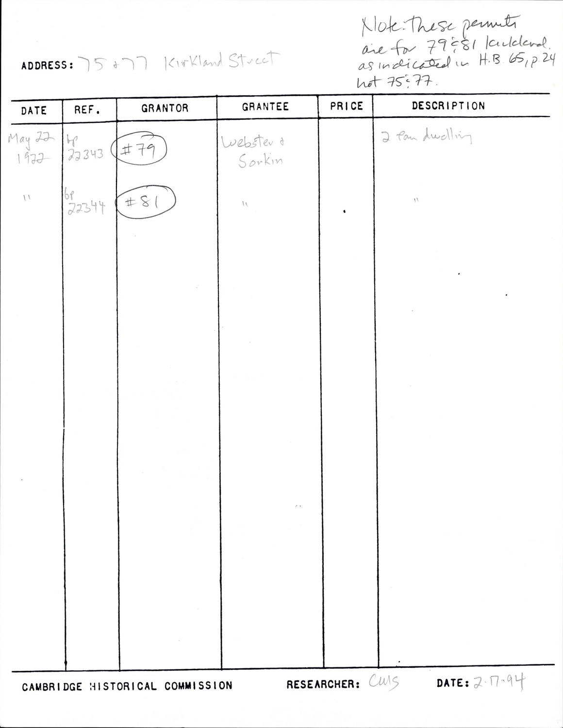 77 Kirkland St - Research Form