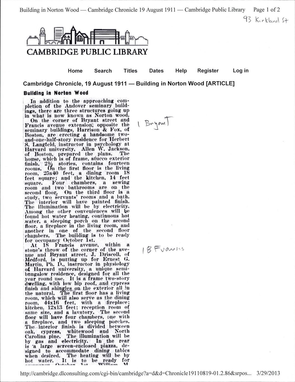 - Cambridge Historical Commission, Digital Architectural Survey and History.