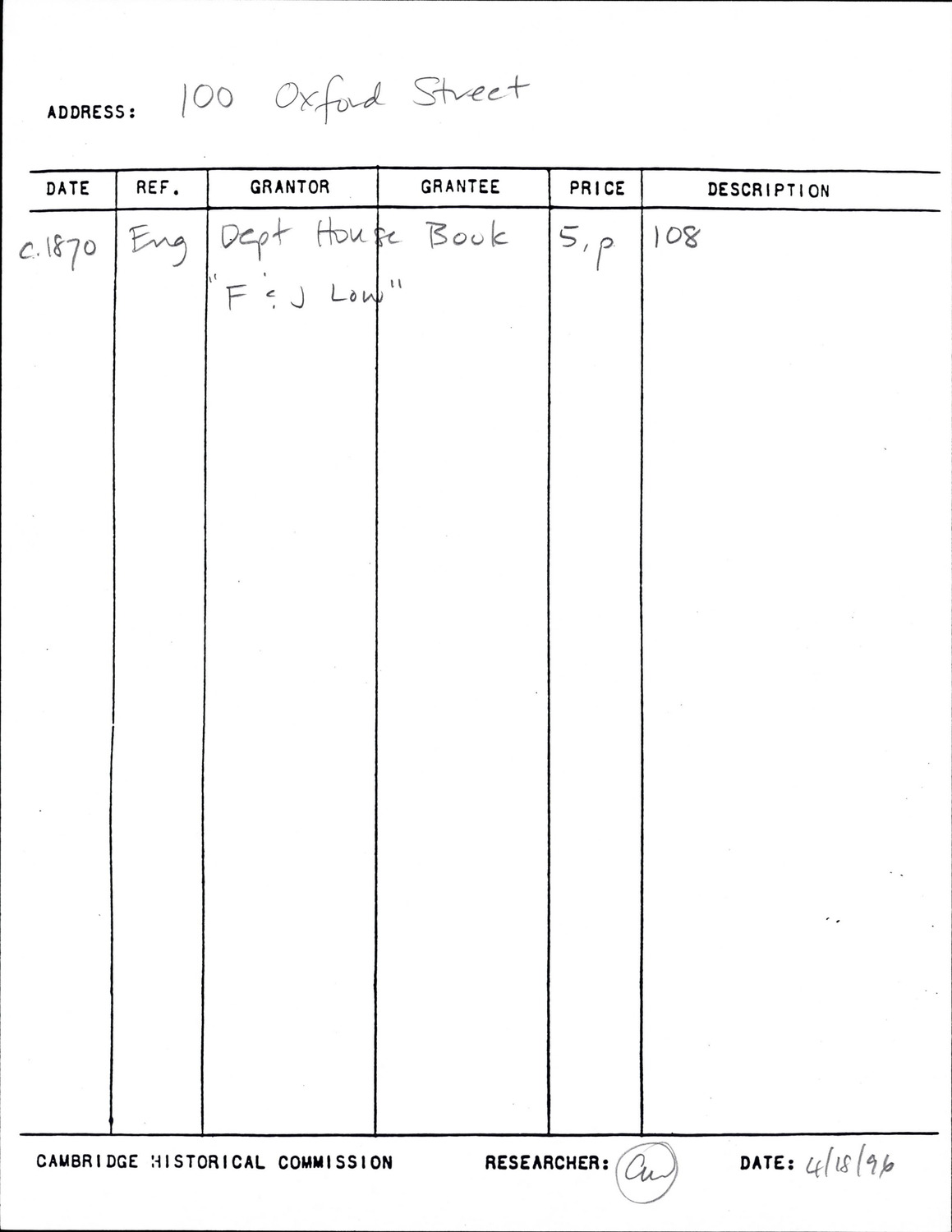 100 Oxford St - Research Form