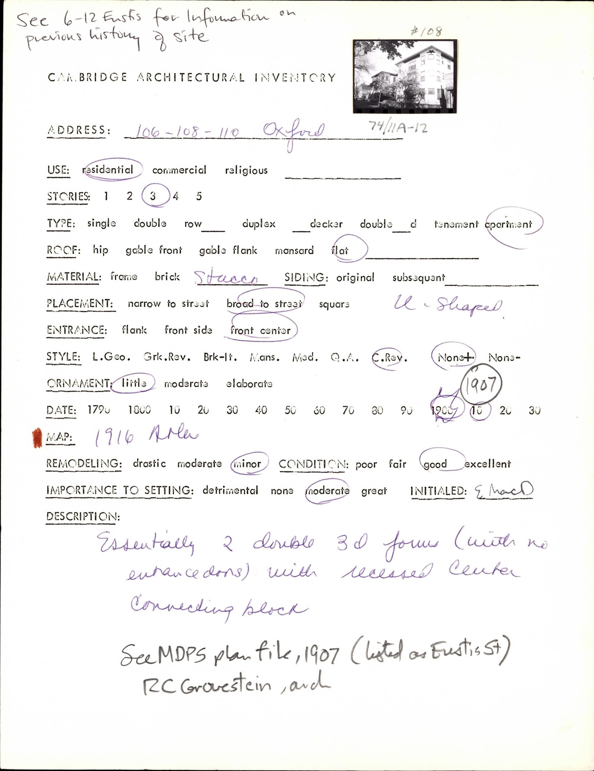 106-110 Oxford St - Architectural Inventory Form