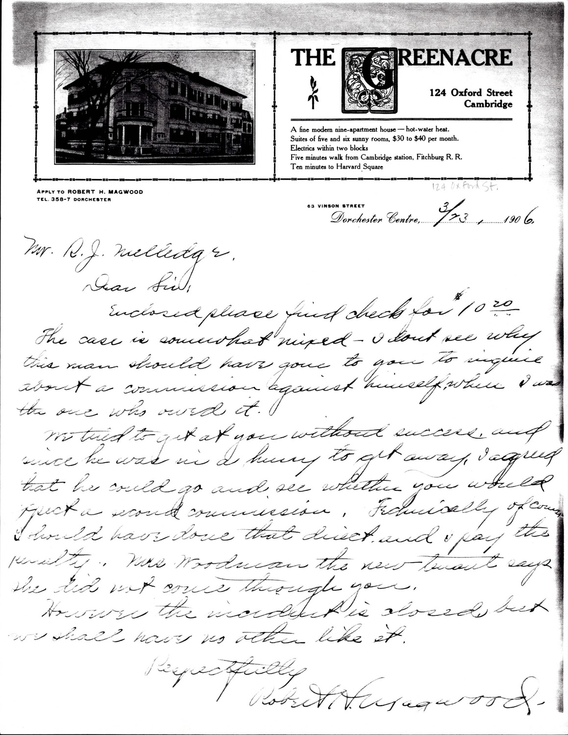 124 Oxford St - Correspondence