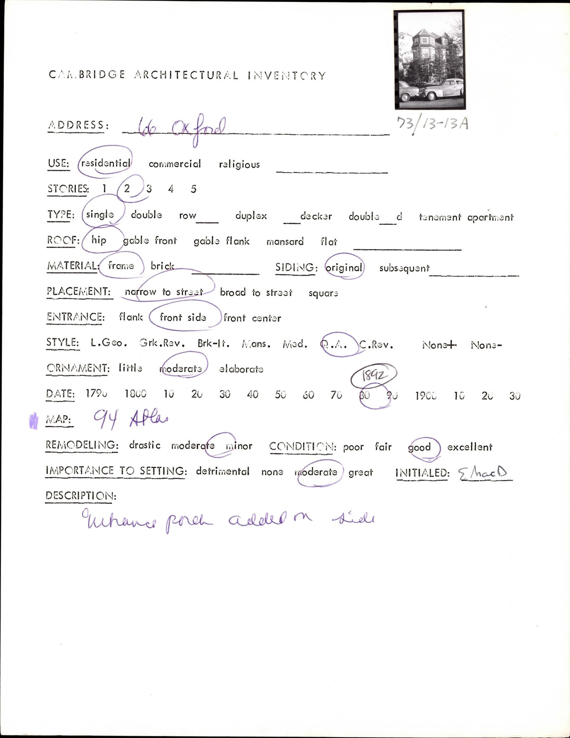 - Cambridge Historical Commission, Digital Architectural Survey and History.