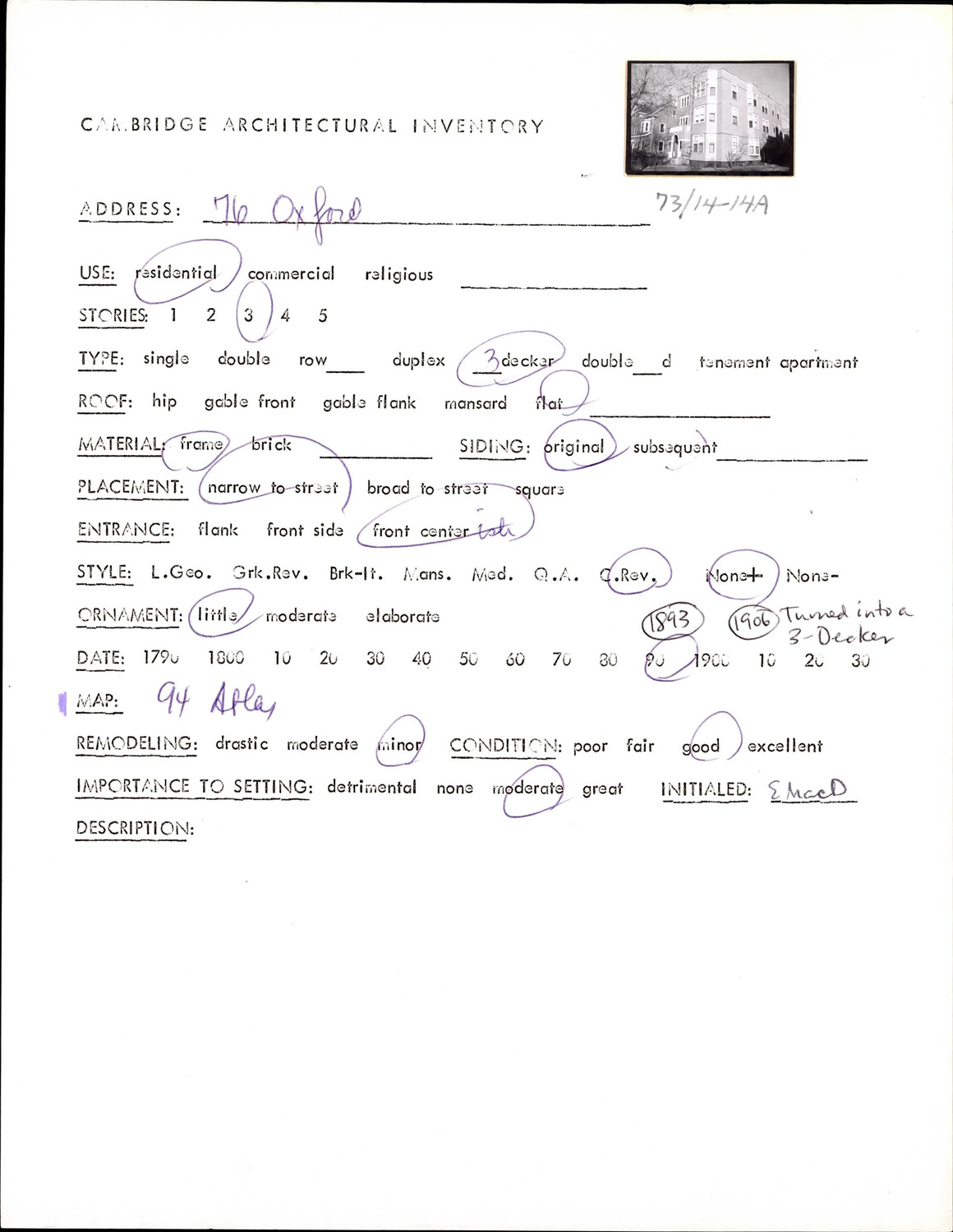 76 Oxford St - Architectural Inventory Form