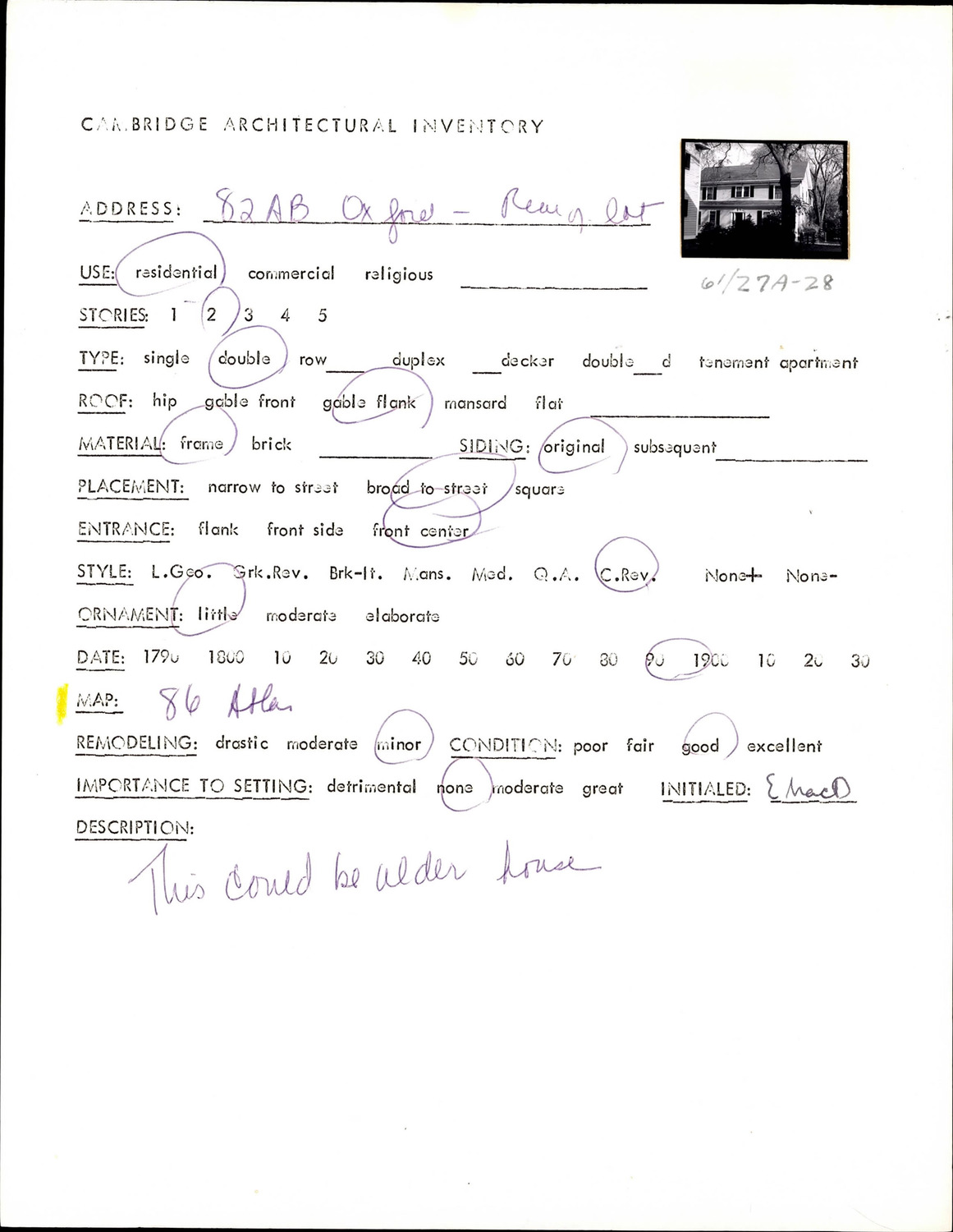 - Cambridge Historical Commission, Digital Architectural Survey and History.
