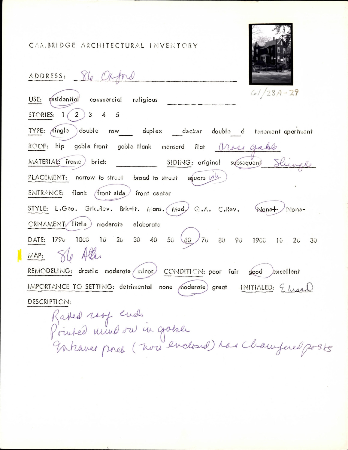 86 Oxford St - Architectural Inventory Form