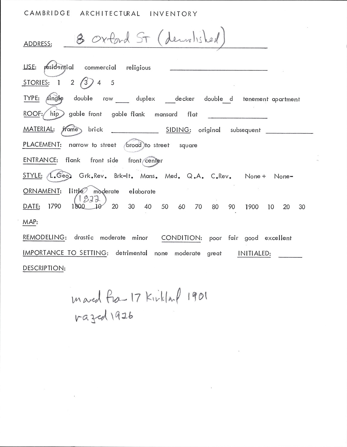 - Cambridge Historical Commission, Digital Architectural Survey and History.