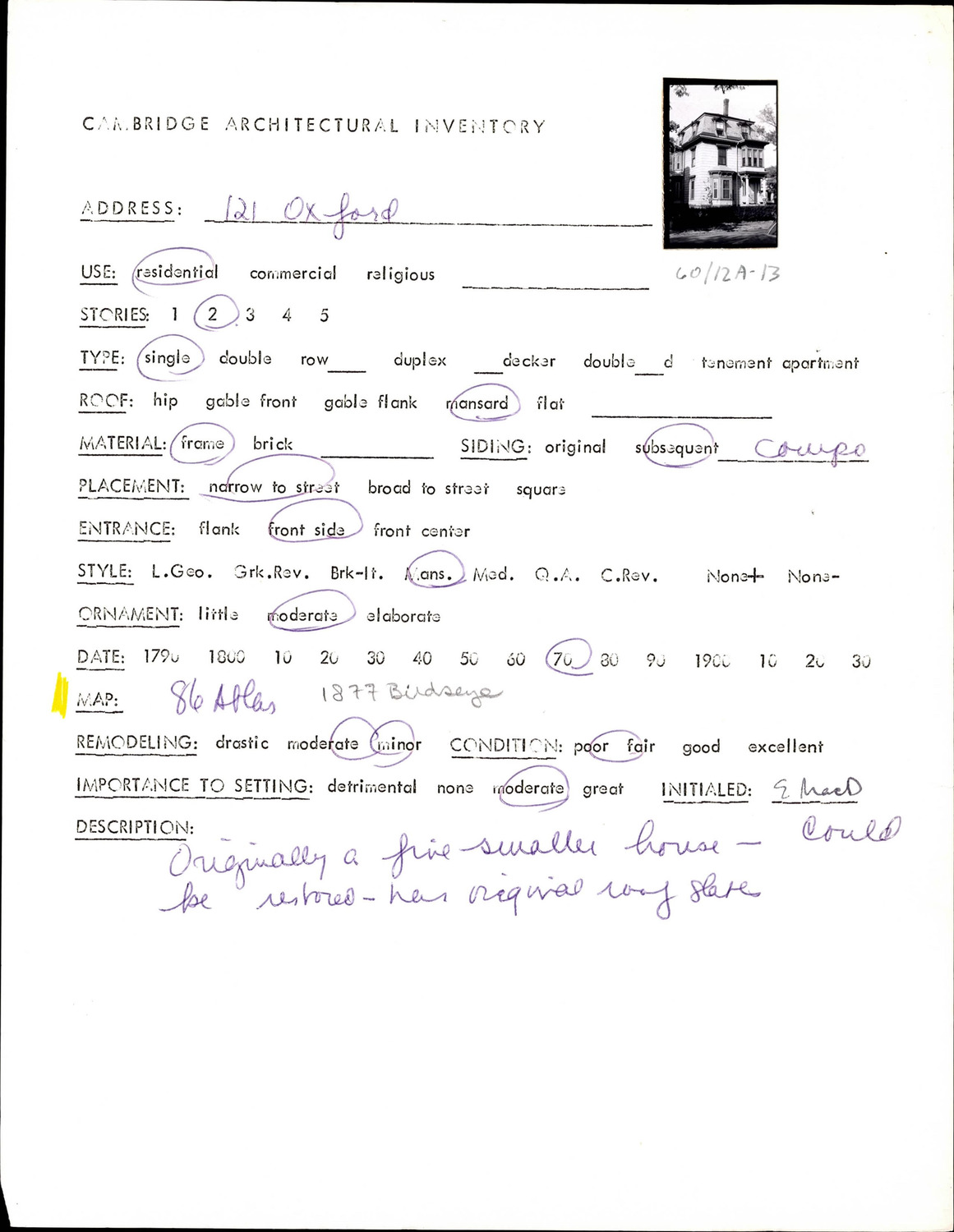 - Cambridge Historical Commission, Digital Architectural Survey and History.