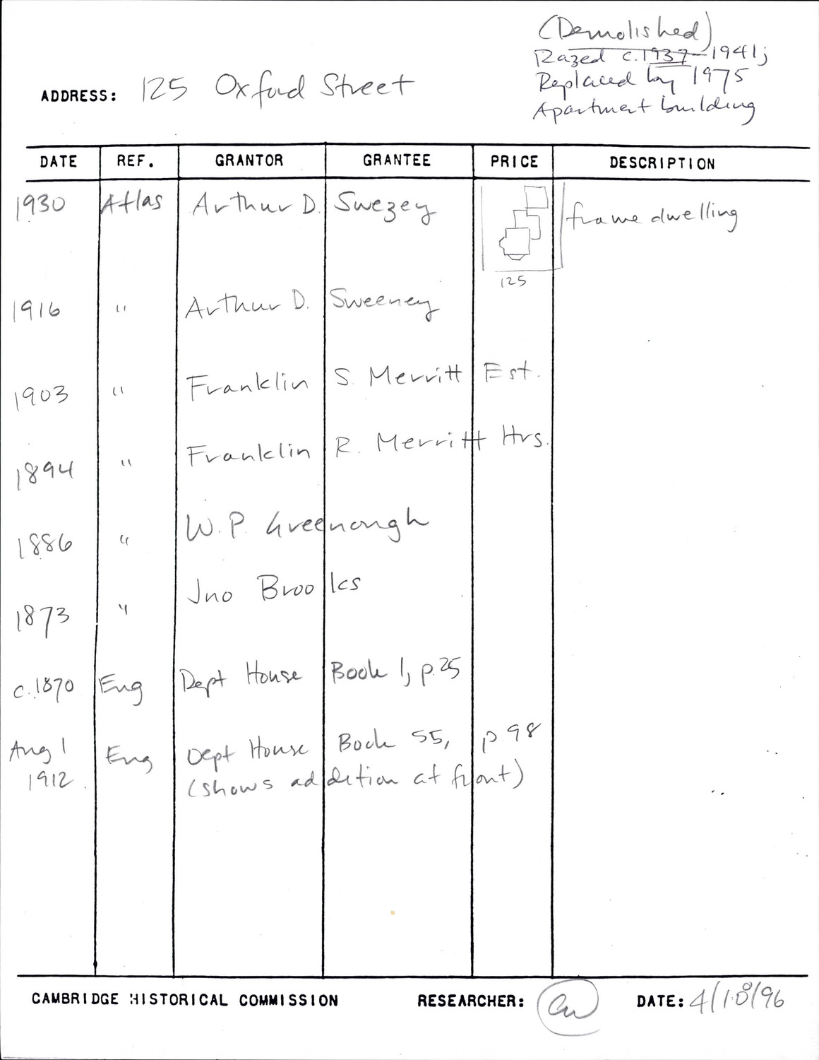 - Cambridge Historical Commission, Digital Architectural Survey and History.