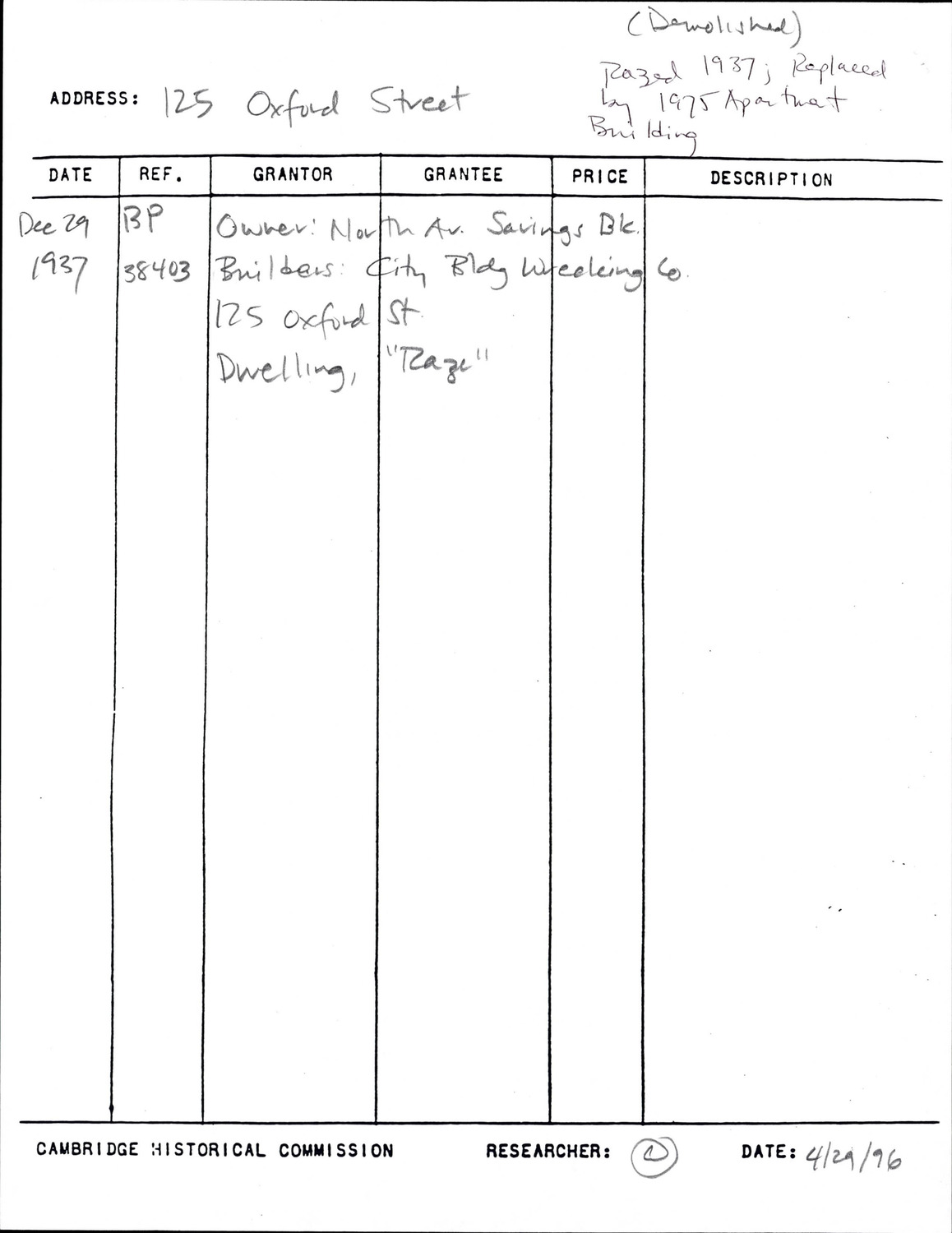 125 Oxford St - Research Form