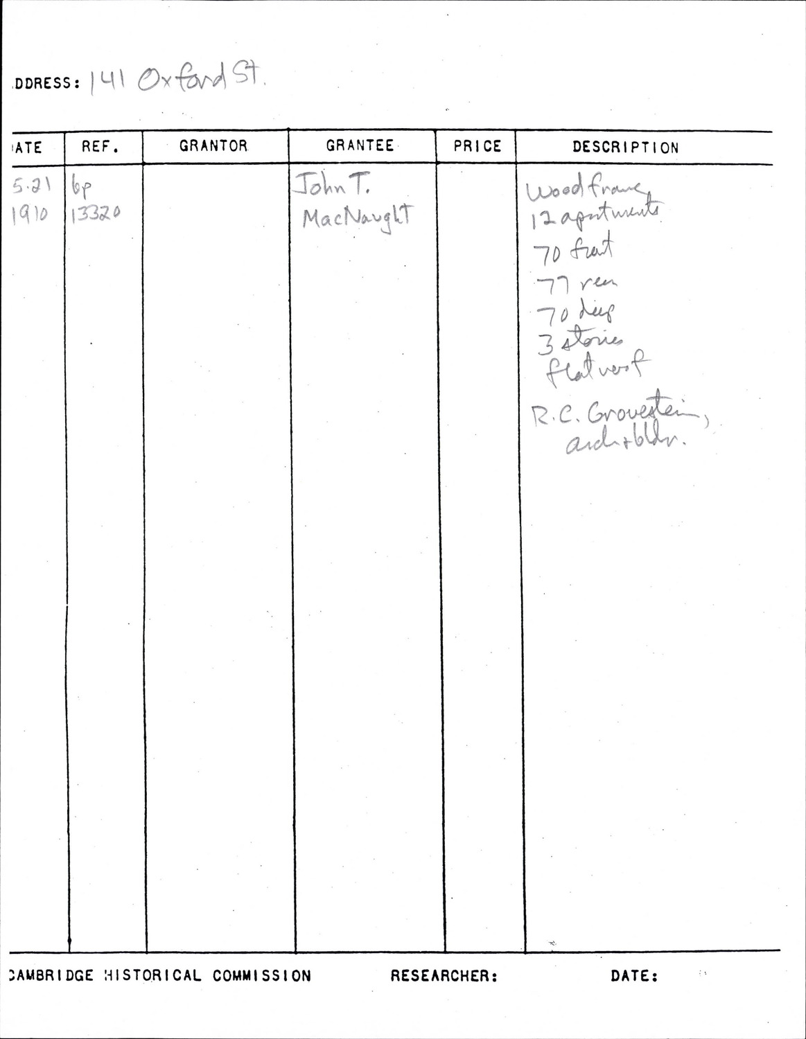 - Cambridge Historical Commission, Digital Architectural Survey and History.