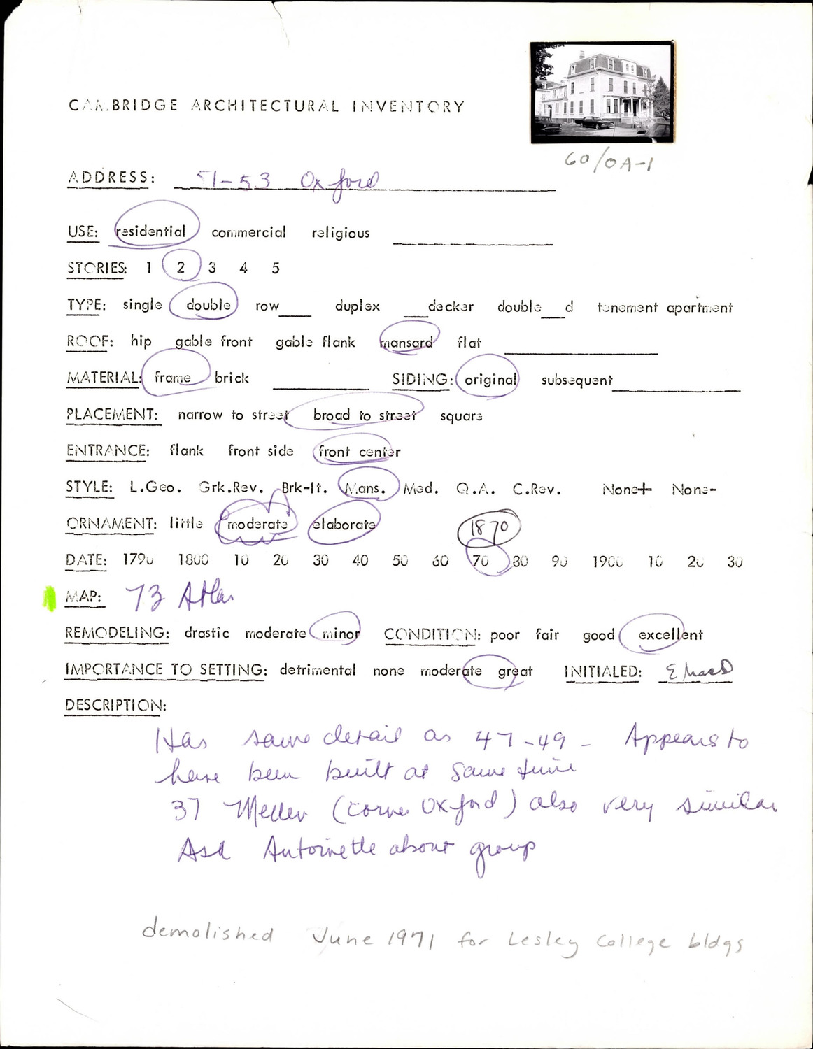 51-53 Oxford St - Architectural Inventory Form