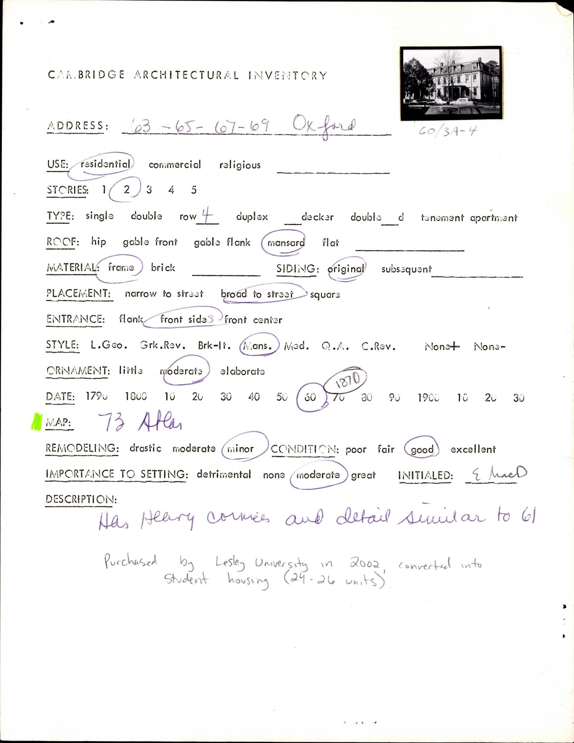 - Cambridge Historical Commission, Digital Architectural Survey and History.