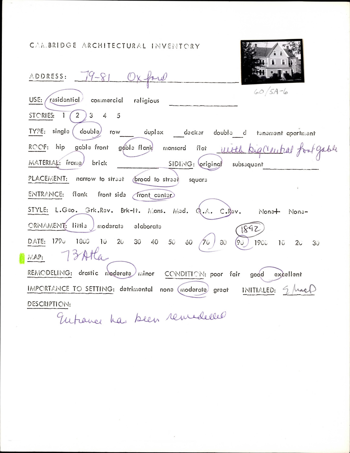 79-81 Oxford St - Architectural Inventory Form