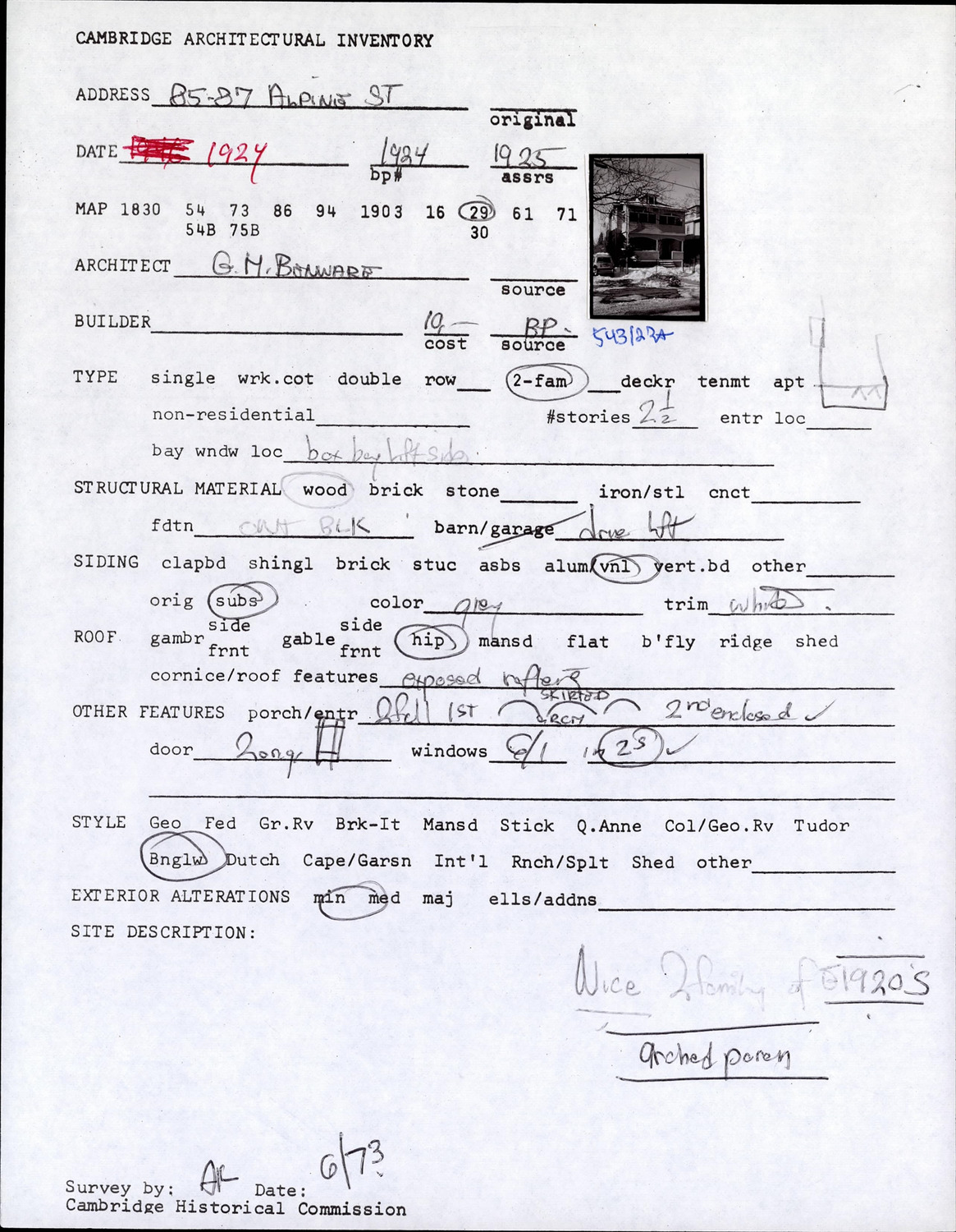 - Cambridge Historical Commission, Digital Architectural Survey and History.