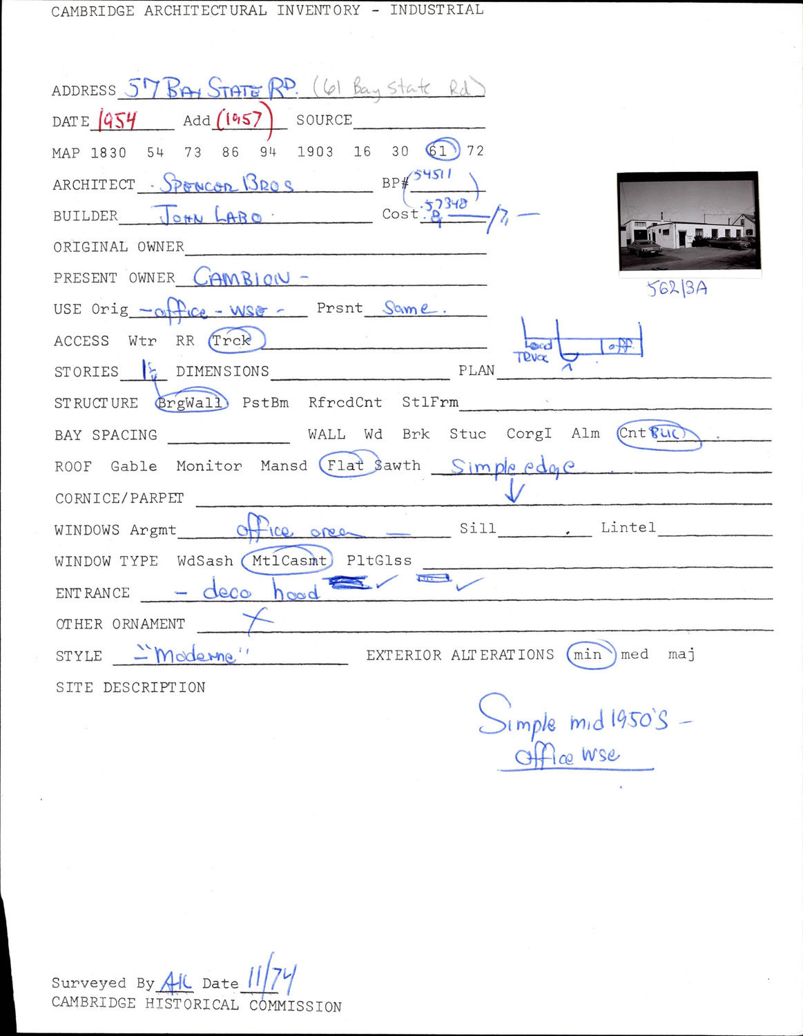 - Cambridge Historical Commission, Digital Architectural Survey and History.