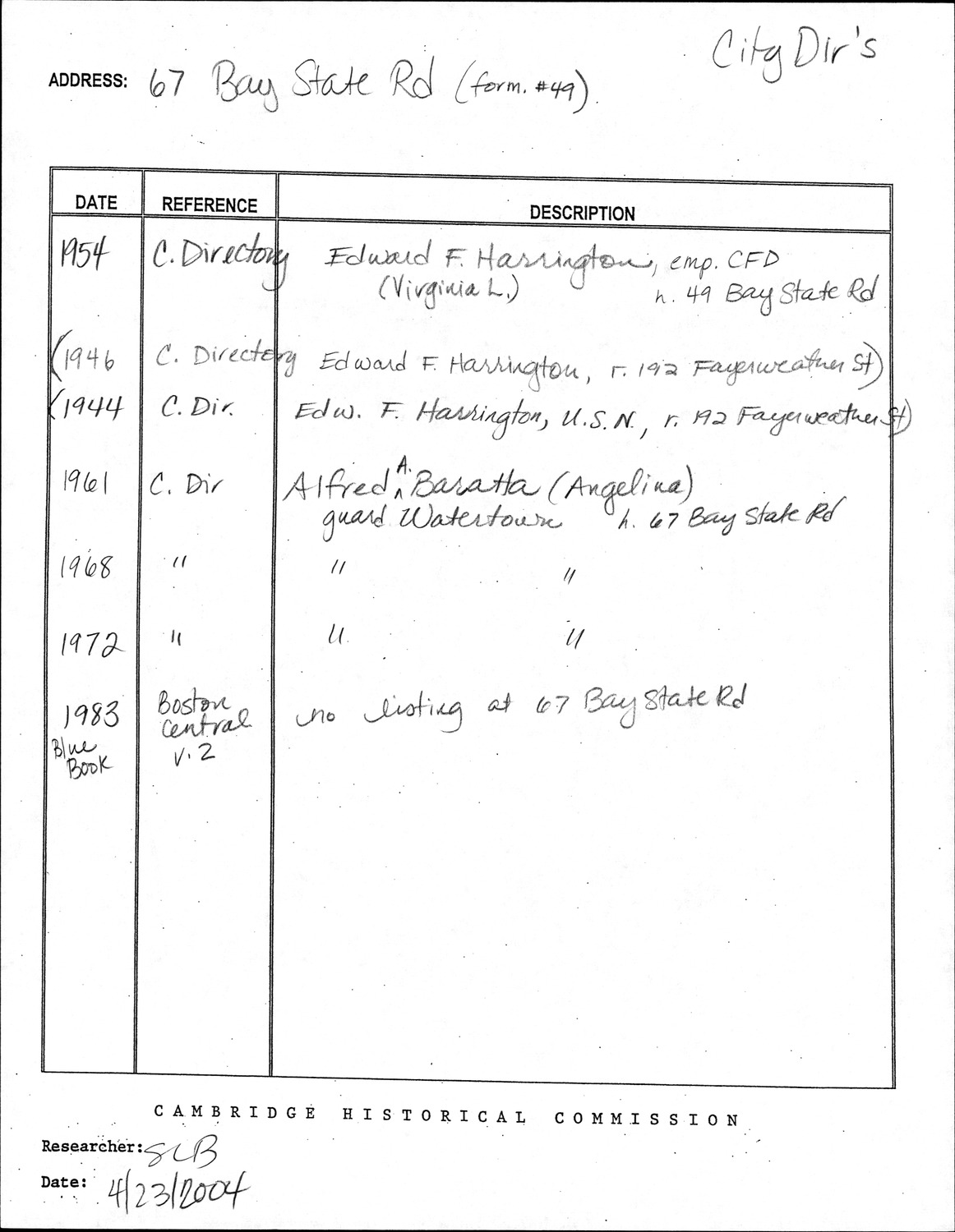67 Bay State Rd - Research Form