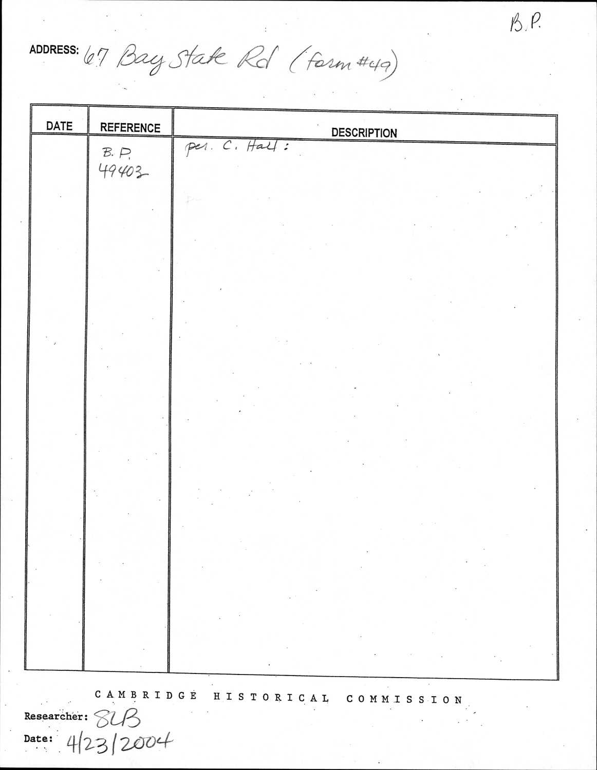67 Bay State Rd - Research Form