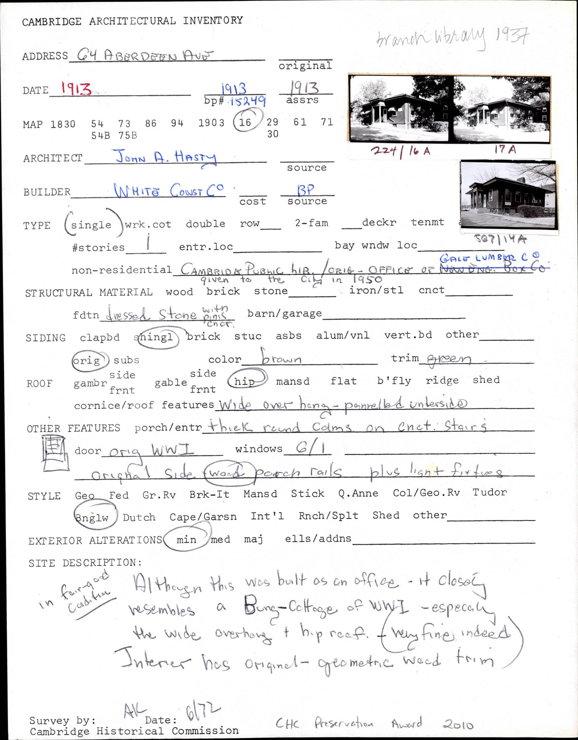 - Cambridge Historical Commission, Digital Architectural Survey and History.