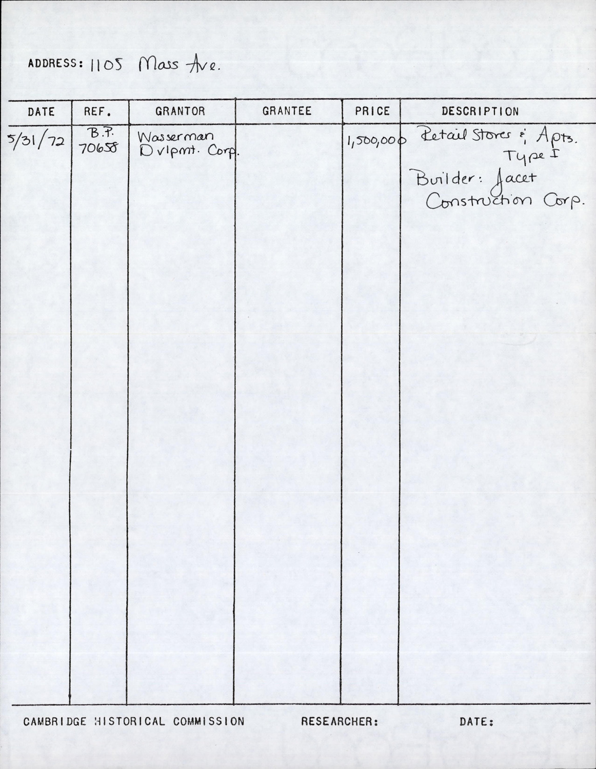 1105 Massachusetts Ave - Research Form