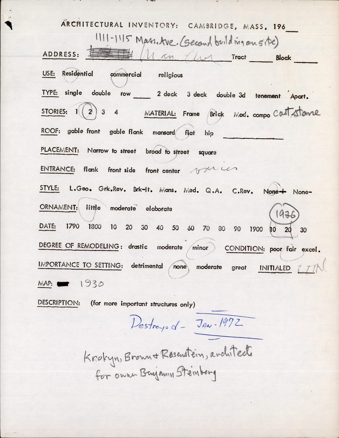 1111-1115 Massachusetts Ave - Architectural Inventory Form