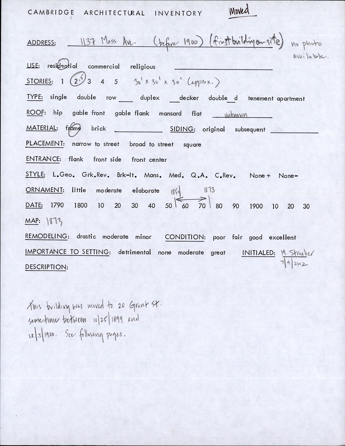 - Cambridge Historical Commission, Digital Architectural Survey and History.