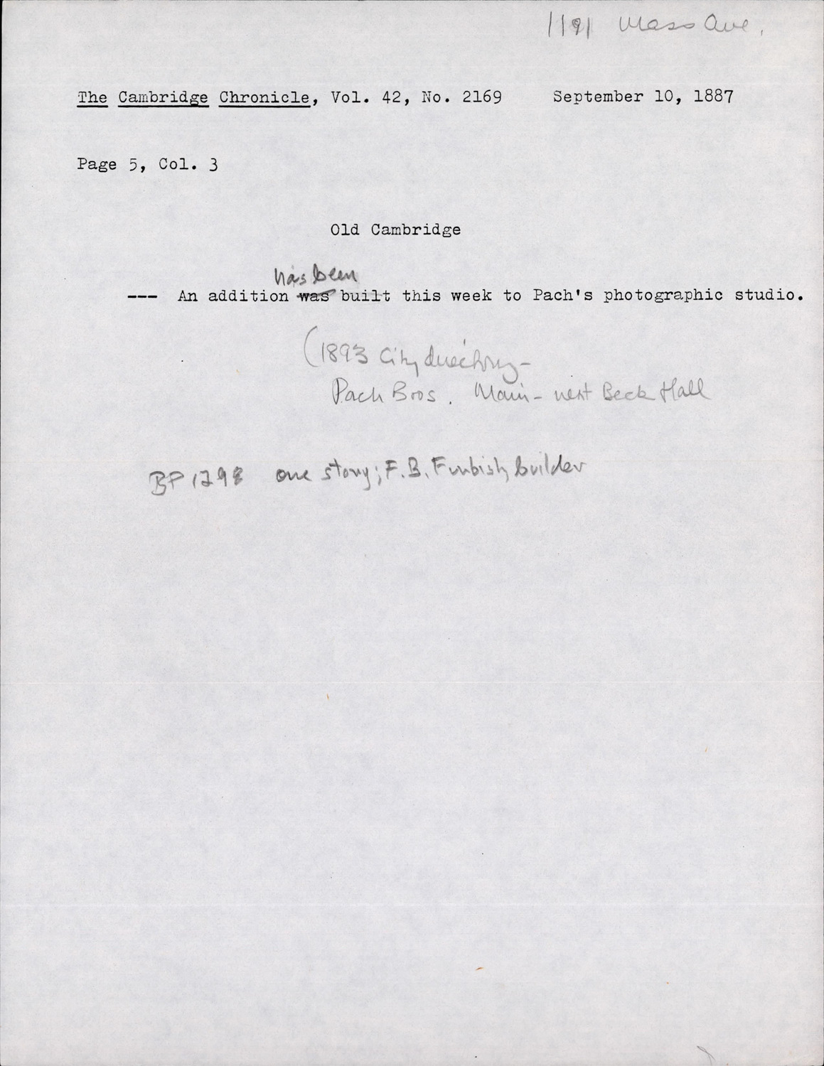 1191 Massachusetts Ave - Published Material