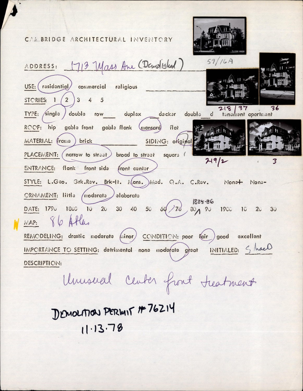 1713 Massachusetts Ave - Architectural Inventory Form