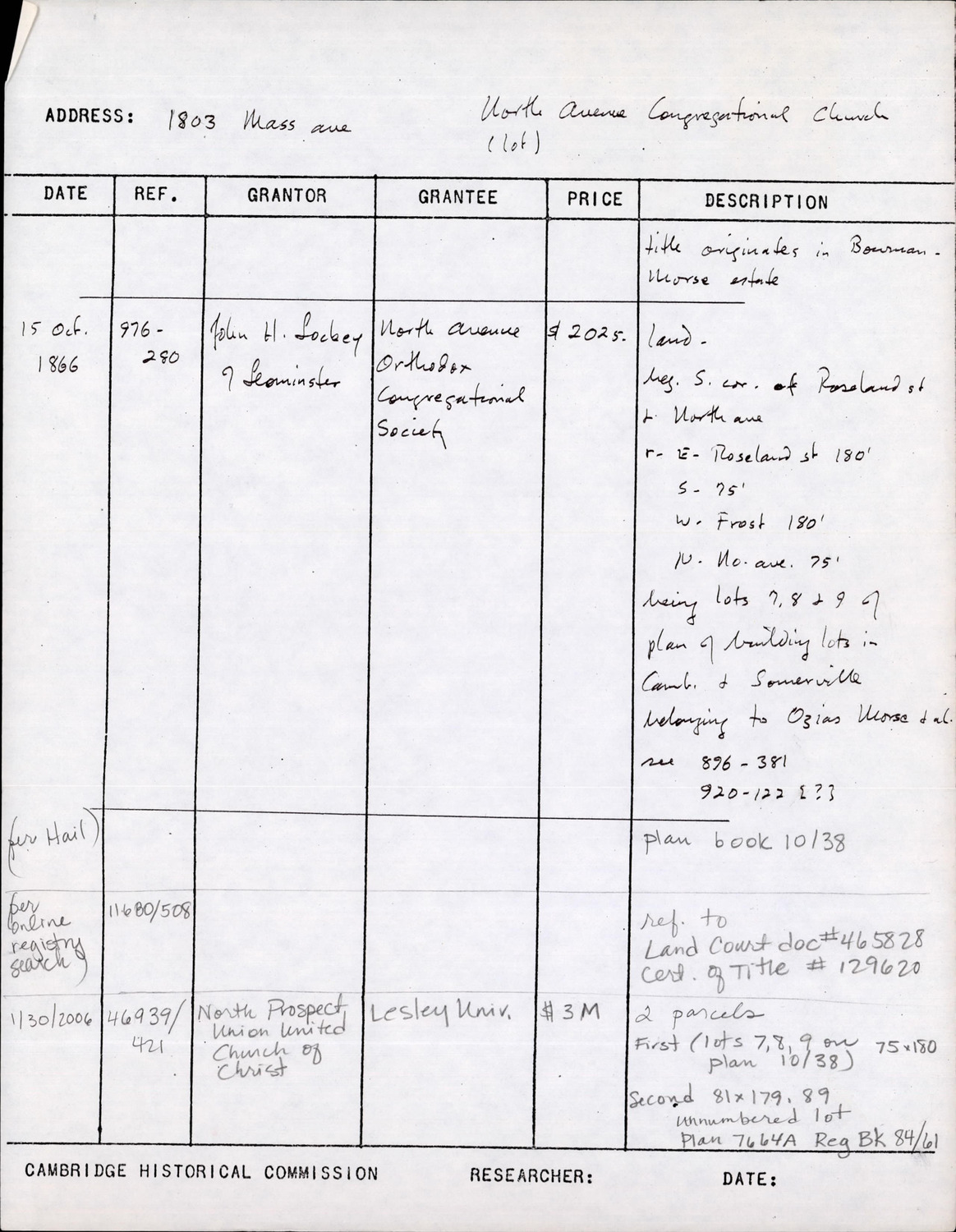 1803 Massachusetts Ave - North Ave Congregational Church - Research Form