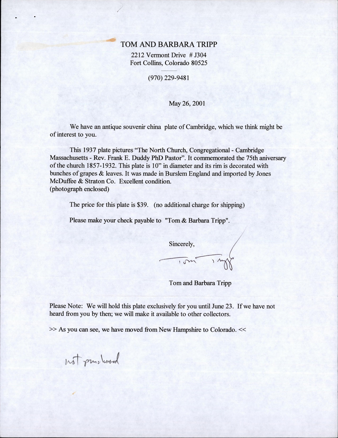 1803 Massachusetts Ave - North Ave Congregational Church - Correspondence