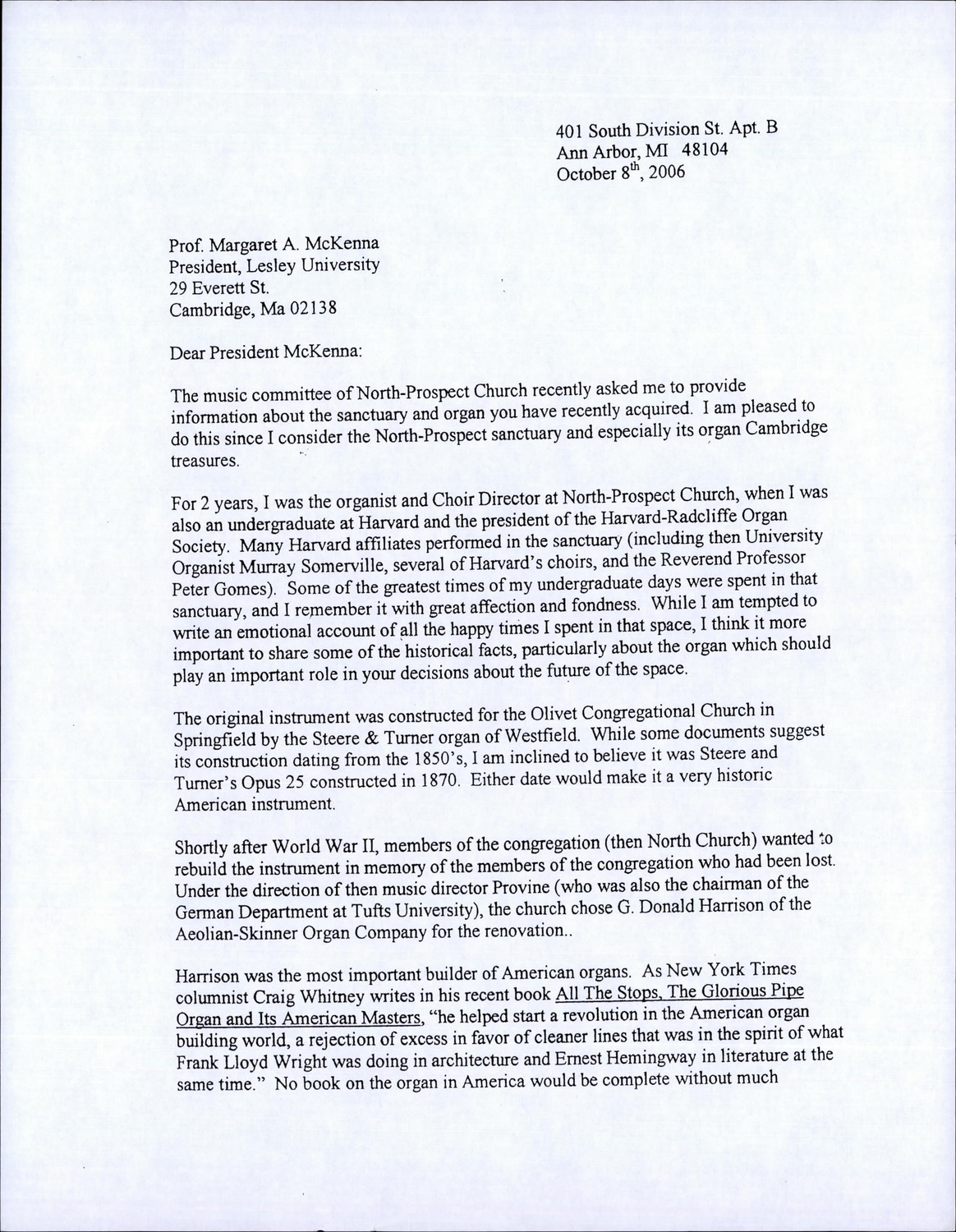 1803 Massachusetts Ave - North Ave Congregational Church - Correspondence