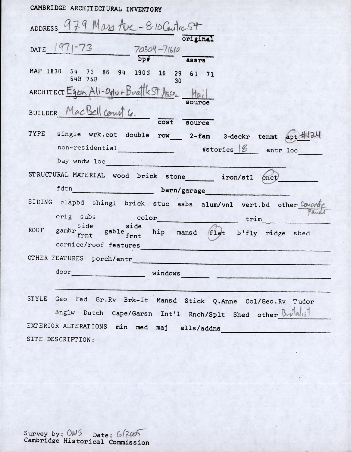 - Cambridge Historical Commission, Digital Architectural Survey and History.